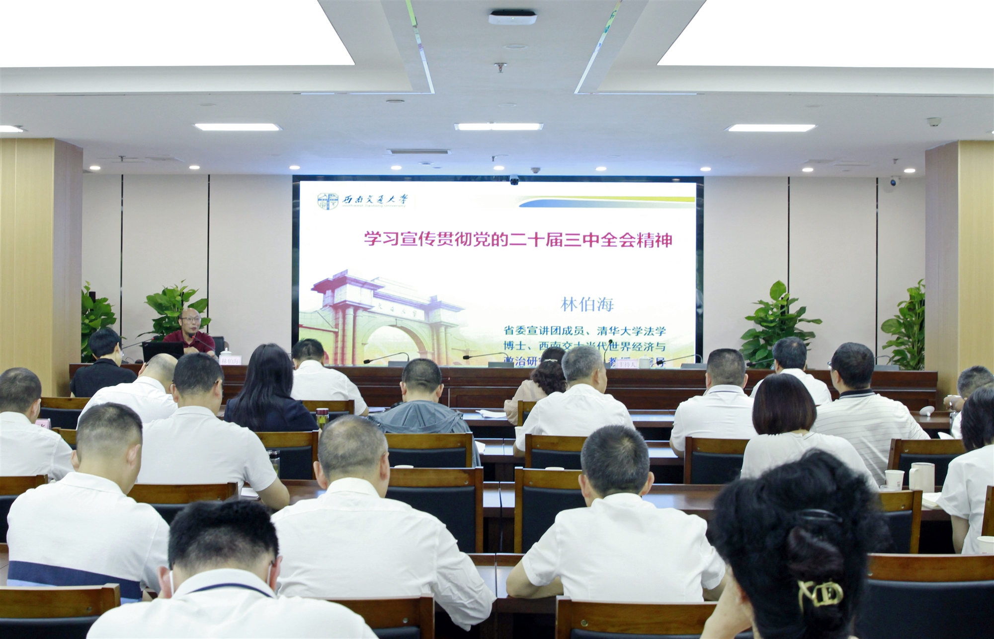 林伯海教授圍繞學(xué)習(xí)宣傳貫徹黨的二十屆三中全會(huì)精神,從進(jìn)一步全面深化改革推進(jìn)中國(guó)式現(xiàn)代化的總體要求、重大舉措以及抓好全會(huì)精神貫徹落實(shí)三個(gè)方面,進(jìn)行了系統(tǒng)講解,為深刻理解全會(huì)精神作了專(zhuān)業(yè)輔導(dǎo),為貫徹落實(shí)全會(huì)精神提出了實(shí)踐要求。