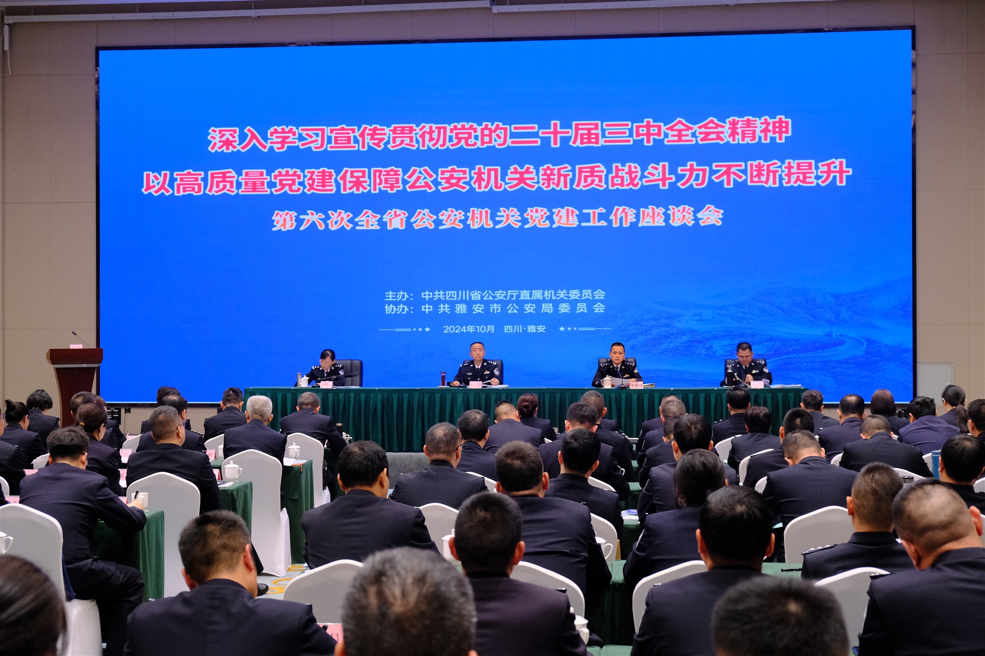 10月25日,第六次全省公安機(jī)關(guān)黨建工作座談會在雅安召開。廳黨委委員、機(jī)關(guān)黨委書記孫小川出席會議并講話,以講授黨課的形式作題為《深入學(xué)習(xí)貫徹黨的二十屆三中全會精神 以高質(zhì)量黨建保障公安機(jī)關(guān)新質(zhì)戰(zhàn)斗力不斷提升》的報(bào)告。雅安市有關(guān)負(fù)責(zé)人致辭。