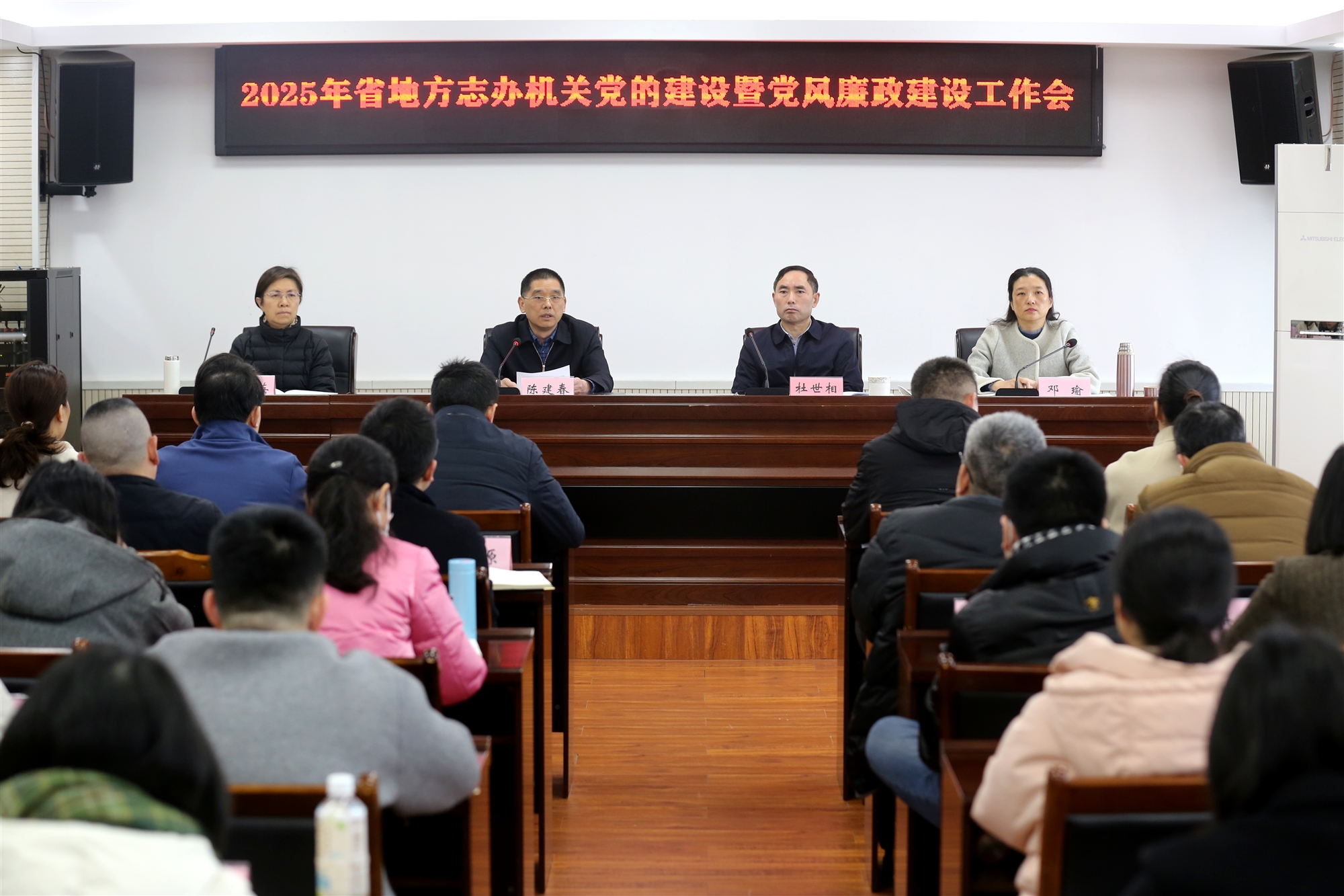 3月11日上午,四川省地方志工作辦公室(簡稱省地方志辦)召開2025年機關(guān)黨的建設(shè)暨黨風(fēng)廉政建設(shè)工作會議。辦黨組書記、主任陳建春出席會議并講話,省紀委監(jiān)委駐省政府辦公廳紀檢監(jiān)察組主要負責(zé)同志等一行3人蒞會指導(dǎo)。辦黨組成員、機關(guān)黨委書記鄧瑜主持會議。