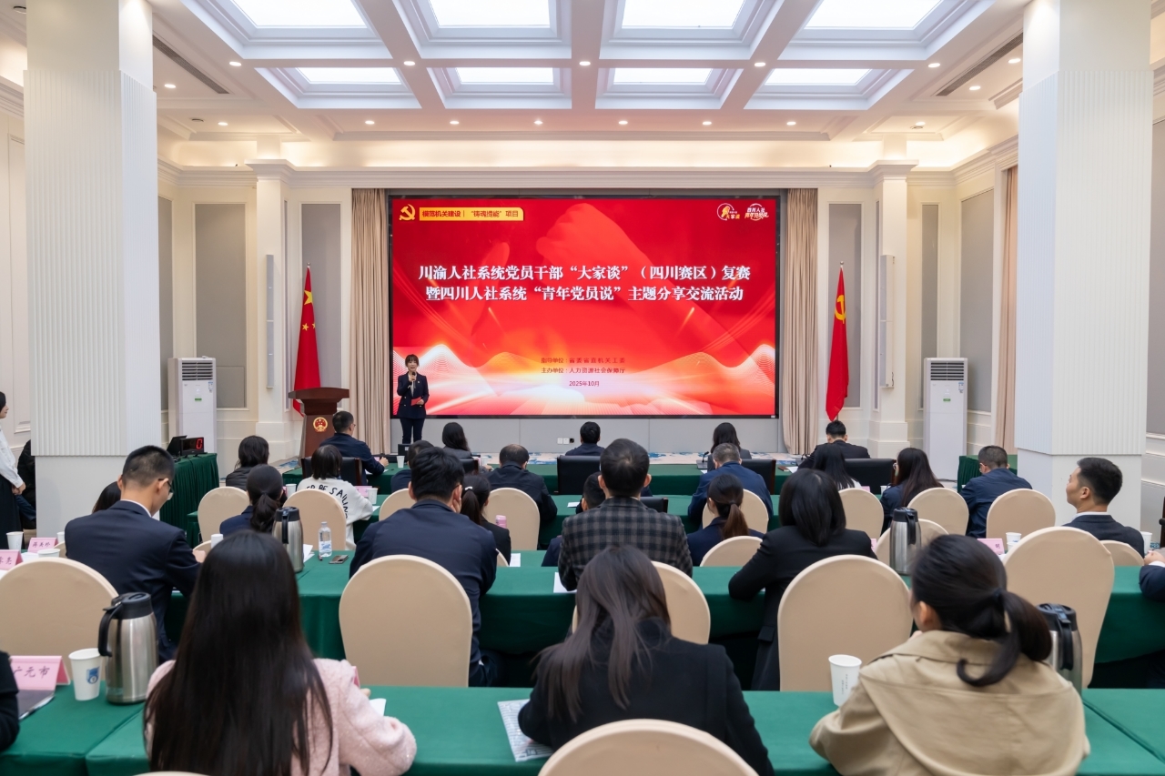 10 月 31 日,川渝人社系統(tǒng)黨員干部 “大家談”(四川賽區(qū))復(fù)賽暨四川人社系統(tǒng) “青年黨員說(shuō)” 主題分享交流活動(dòng)成功舉辦。四川省人力資源和社會(huì)保障廳黨組成員、副廳長(zhǎng)、機(jī)關(guān)黨委書(shū)記熊義堋出席活動(dòng)并講話,省委省直機(jī)關(guān)工委相關(guān)部門(mén)負(fù)責(zé)同志及廳屬單位主要負(fù)責(zé)同志擔(dān)任評(píng)委。?