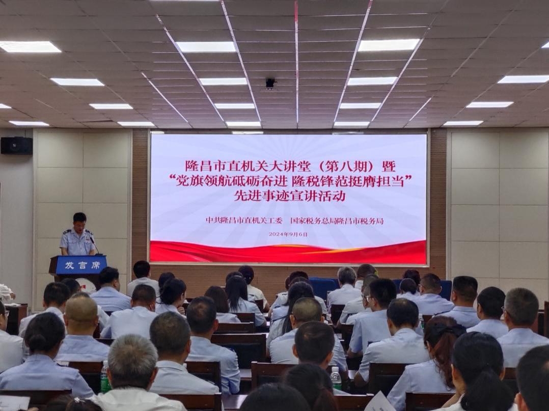 隆昌市直機(jī)關(guān)大講堂(第八期)暨“黨旗領(lǐng)航砥礪奮進(jìn) 隆稅鋒范挺膺擔(dān)當(dāng)” 先進(jìn)事跡宣講活動(dòng)在隆昌市稅務(wù)局開展