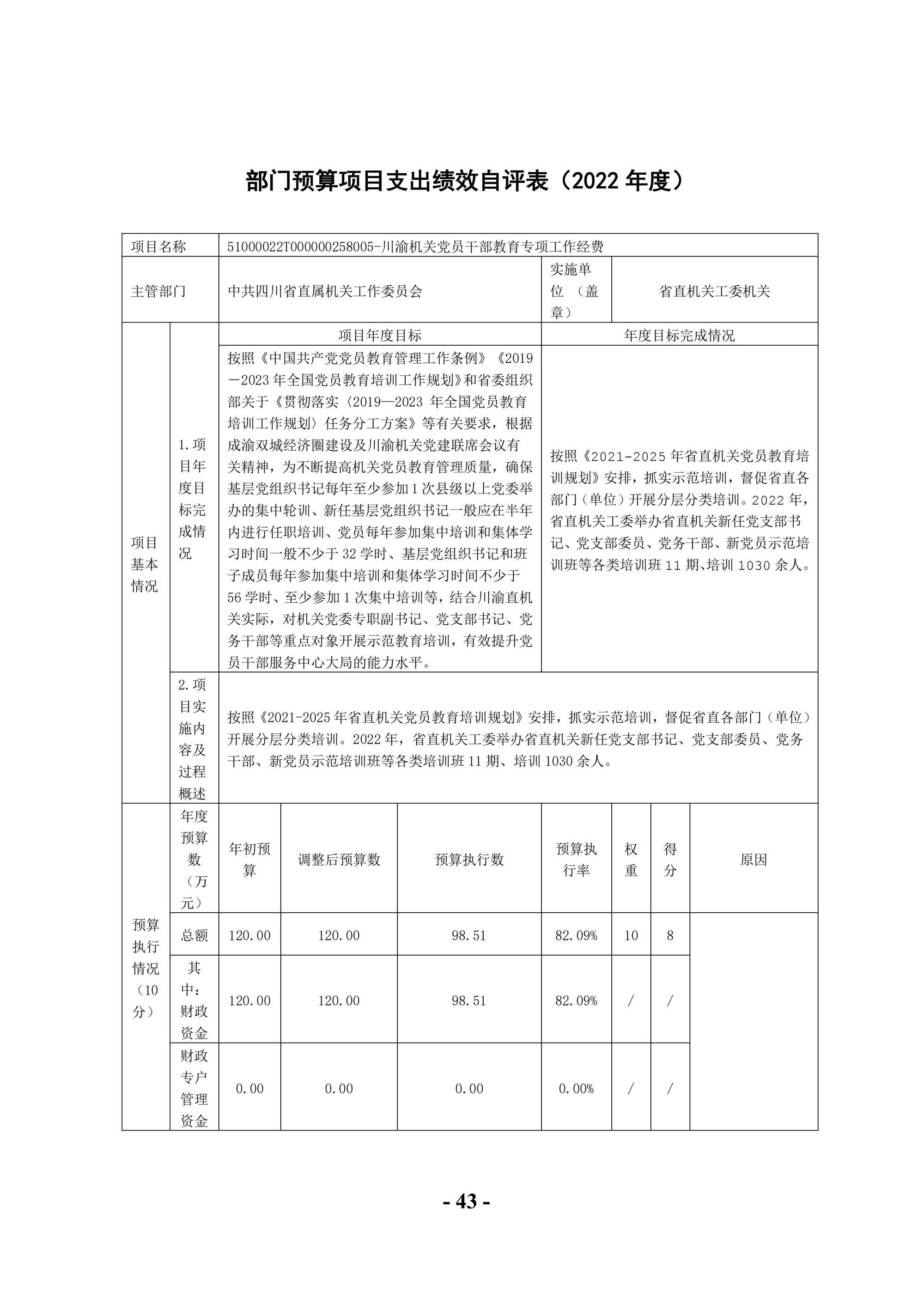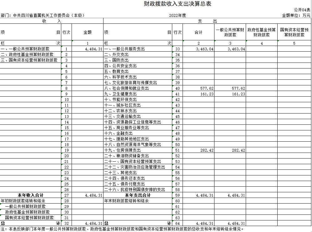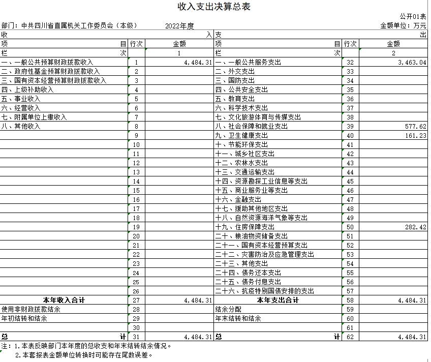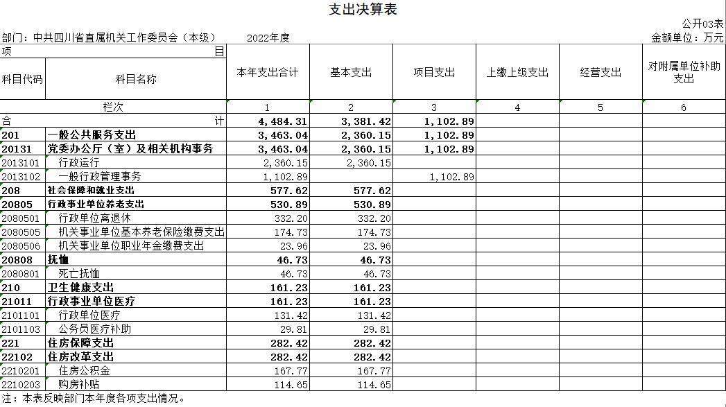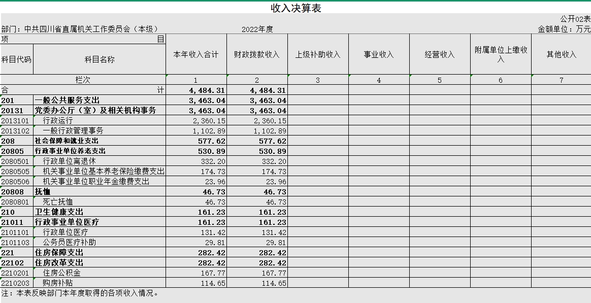 2022年度中共四川省直屬機(jī)關(guān)工作委員會(huì)(本級(jí))單位決算編制說明