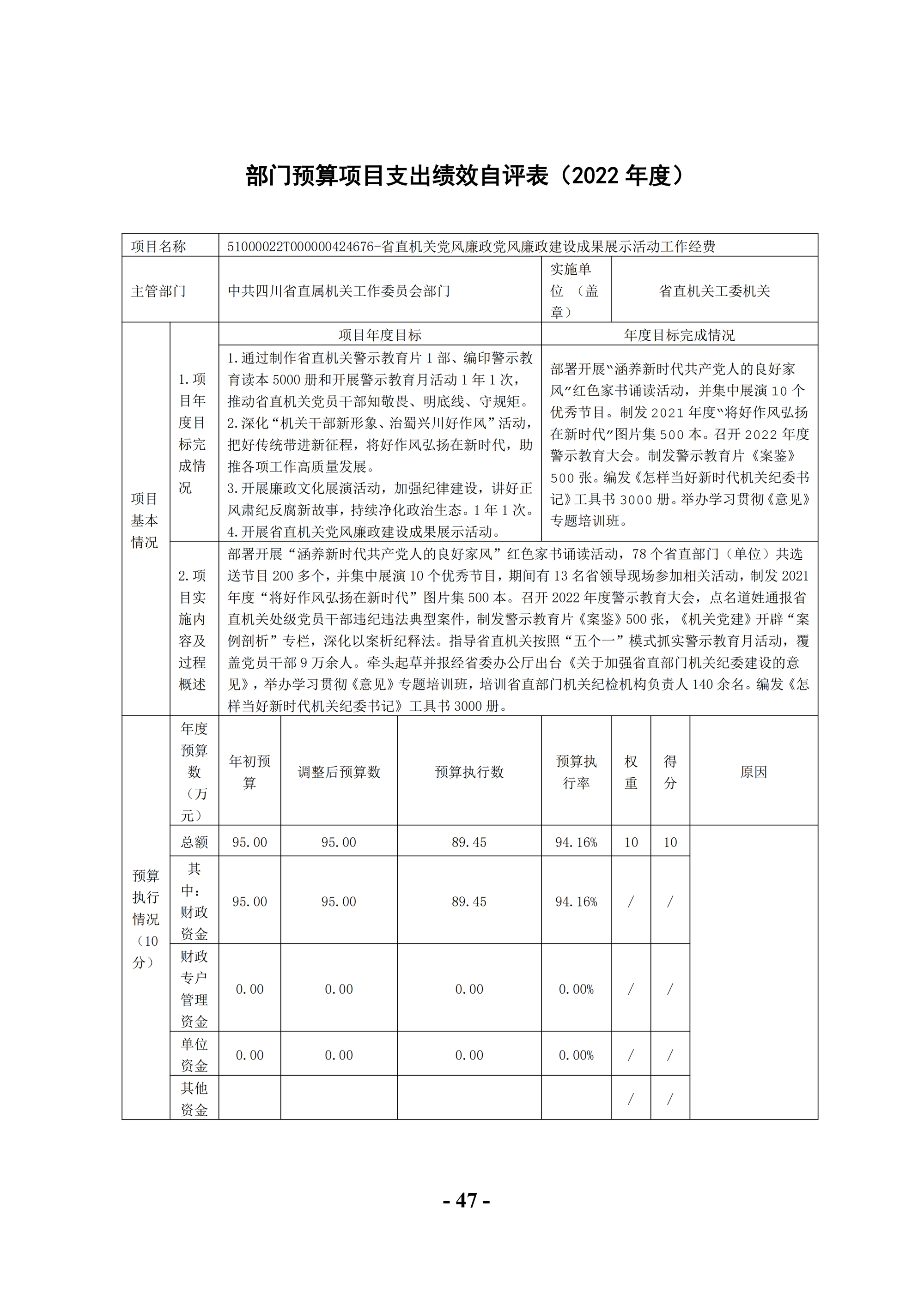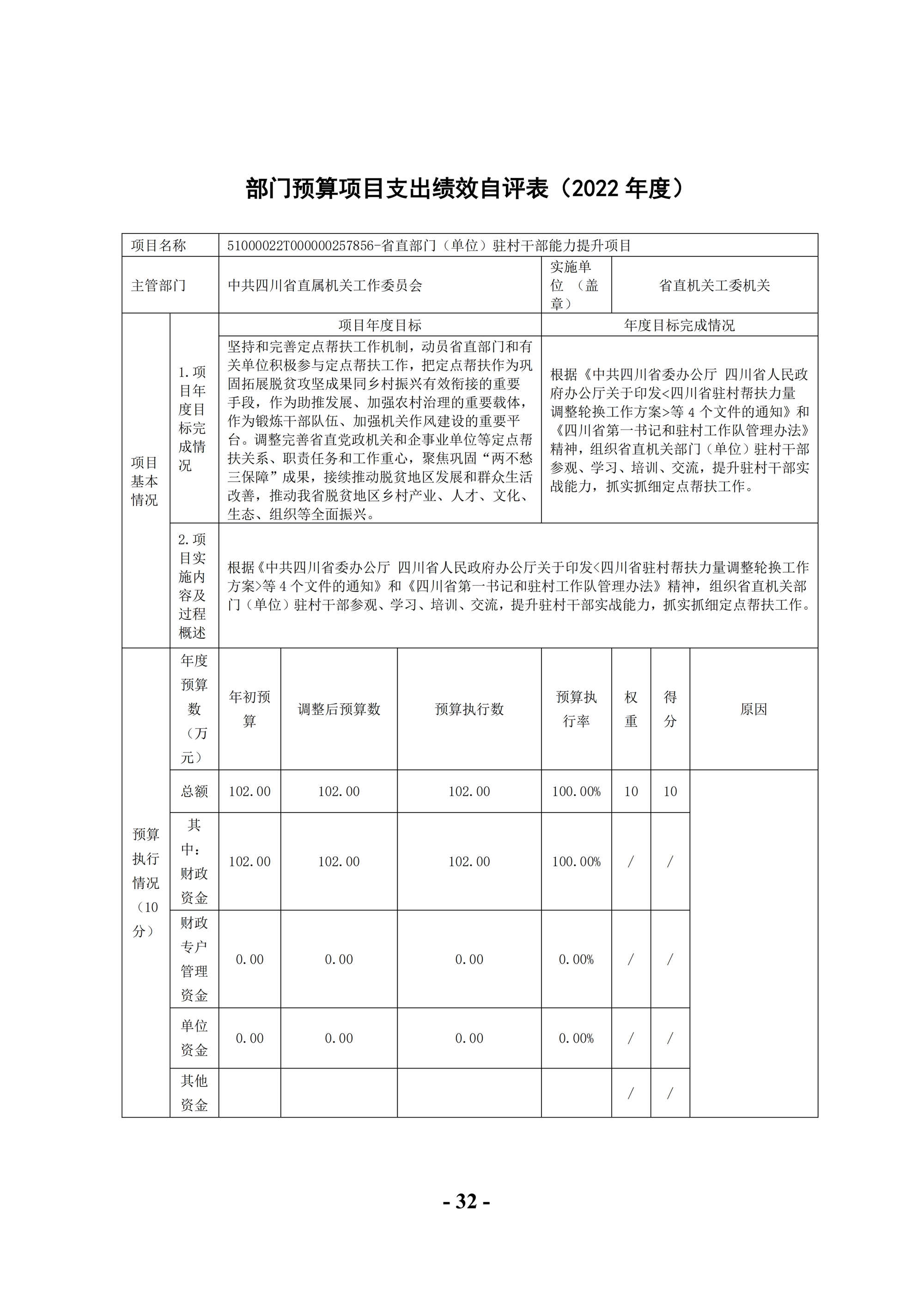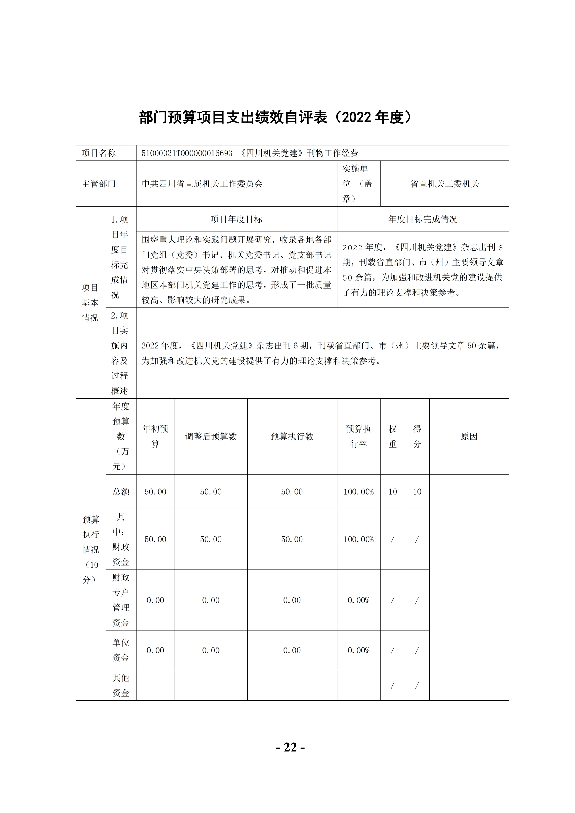 2022年度中共四川省直屬機(jī)關(guān)工作委員會(huì)(本級(jí))單位決算編制說明