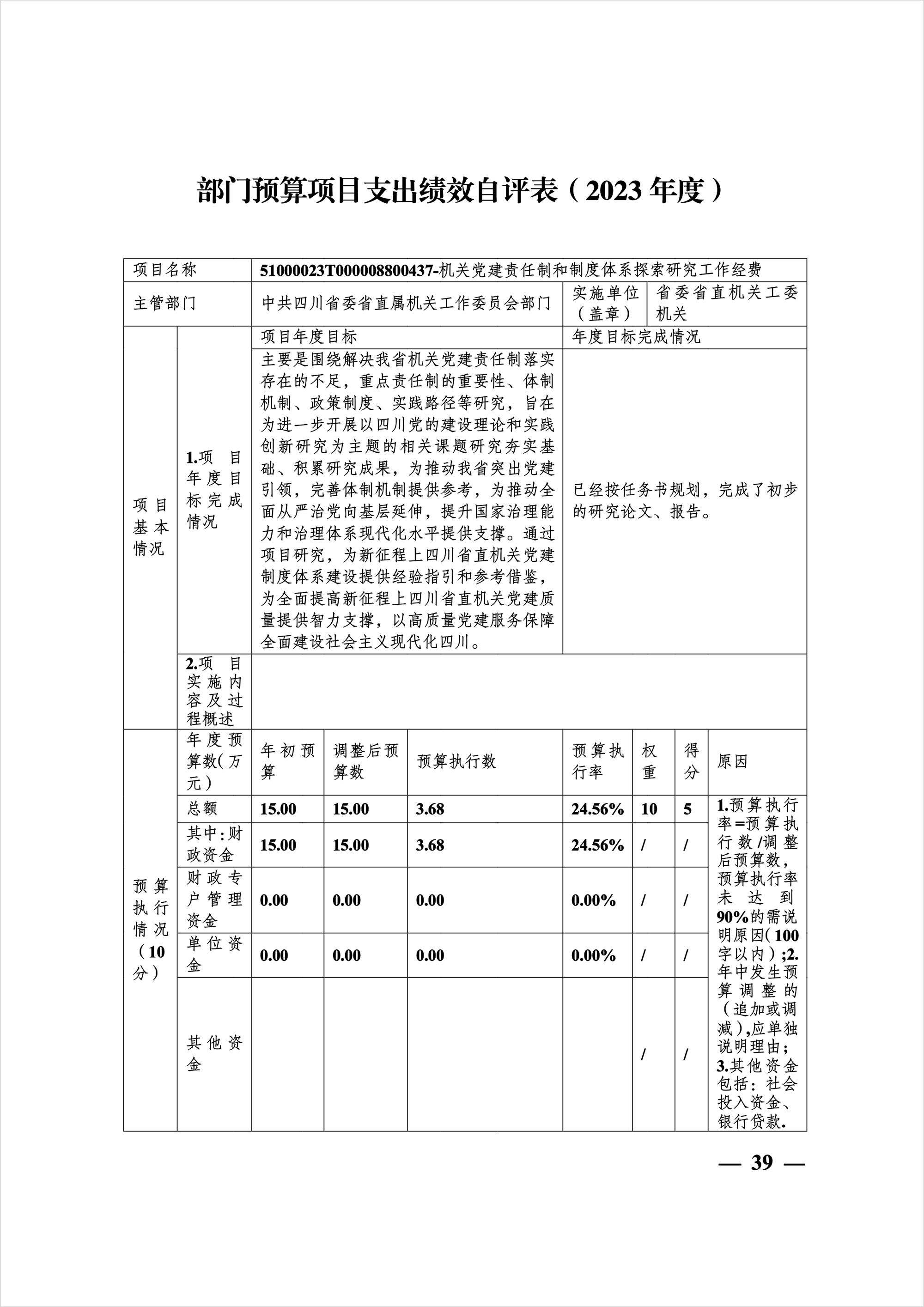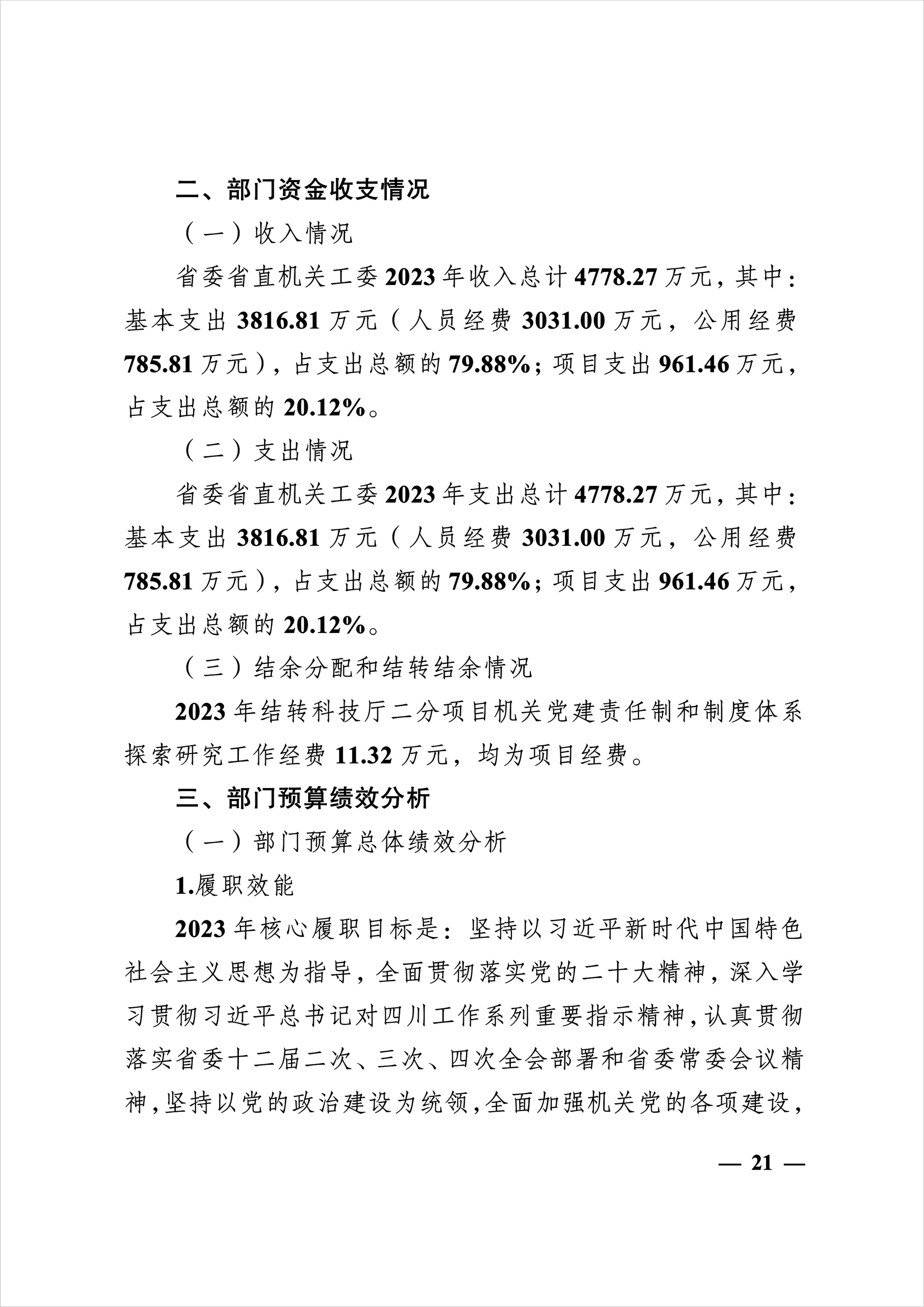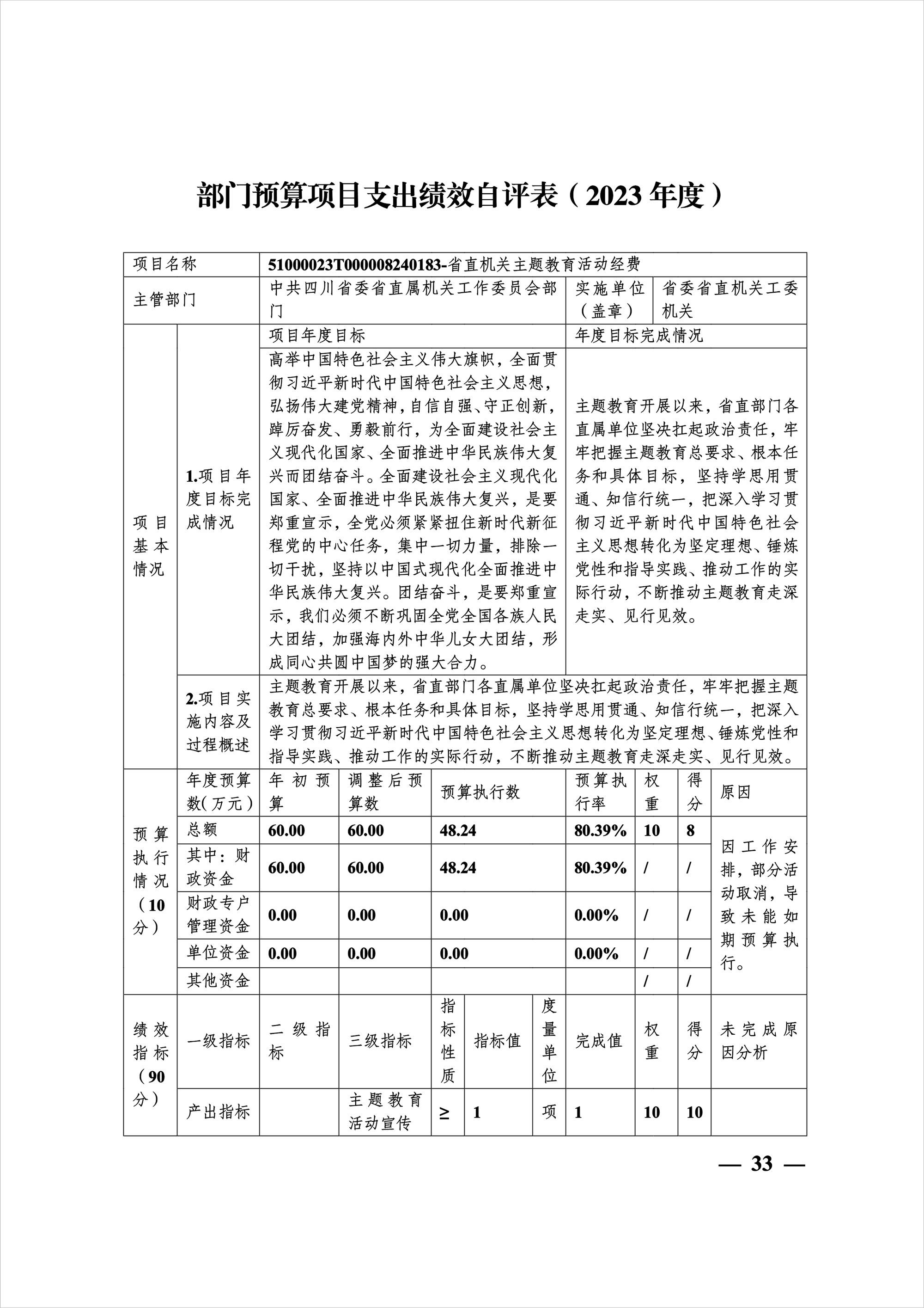 2023年度中共四川省委省直屬機關工作委員會部門決算