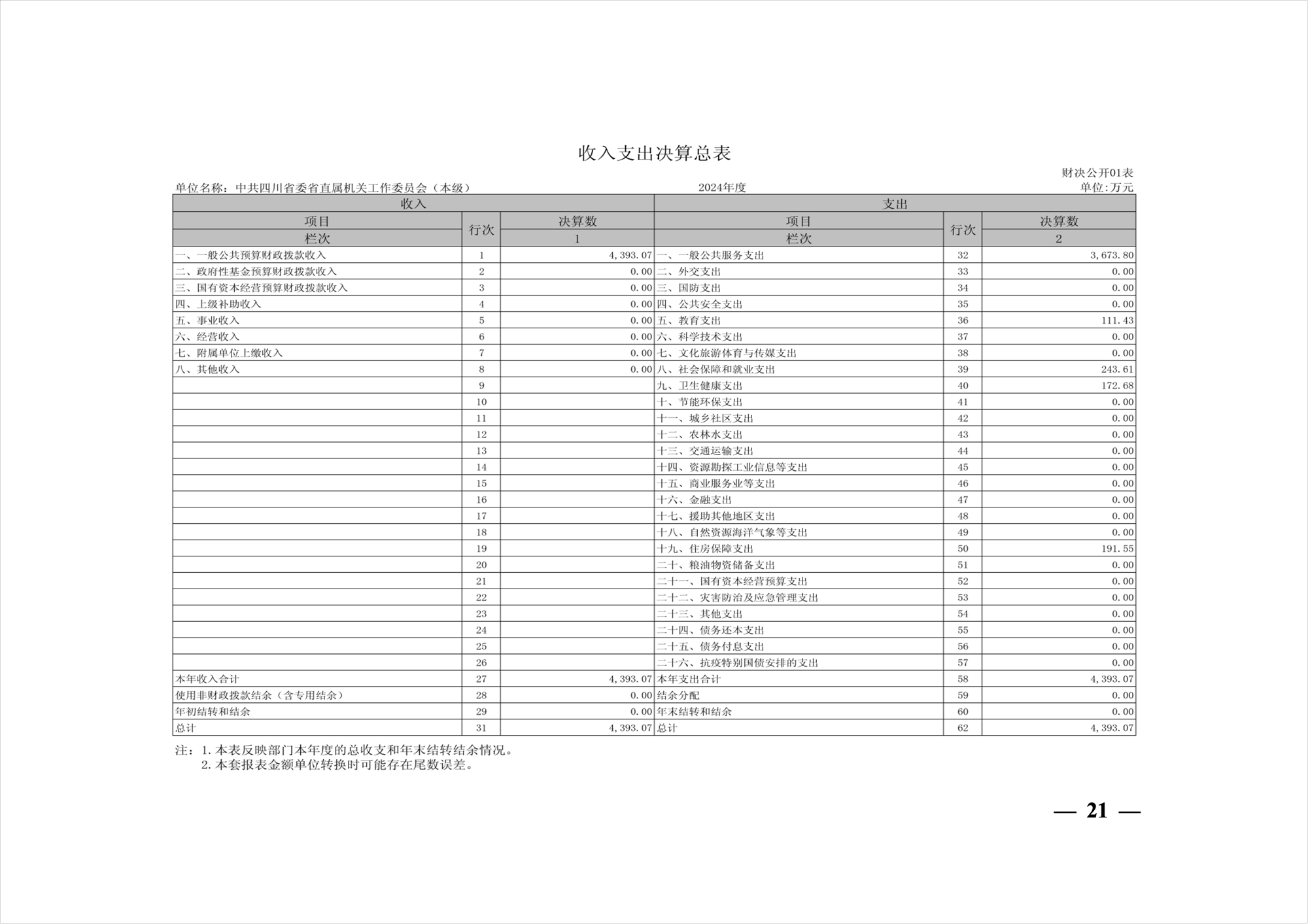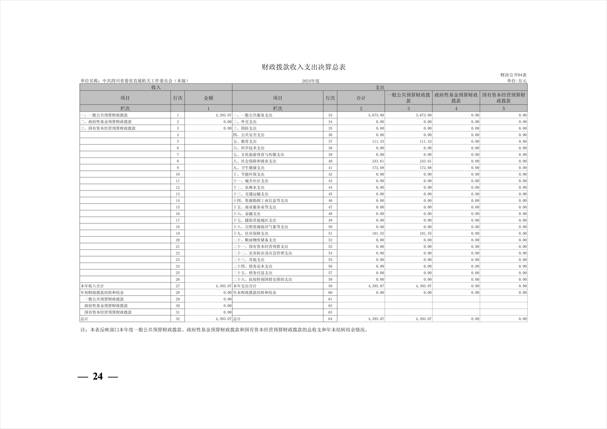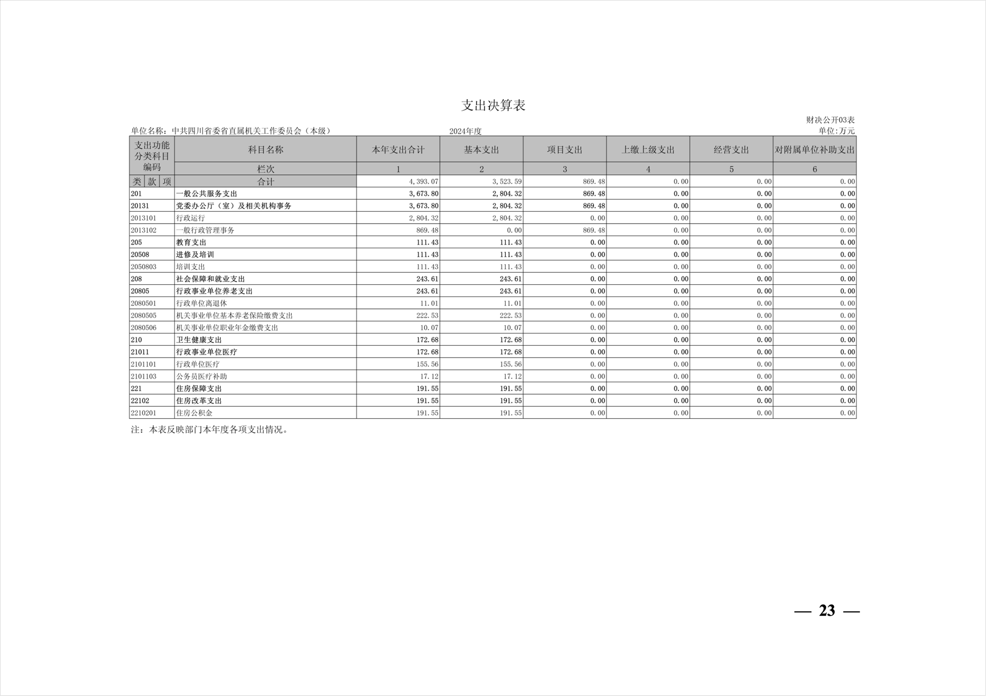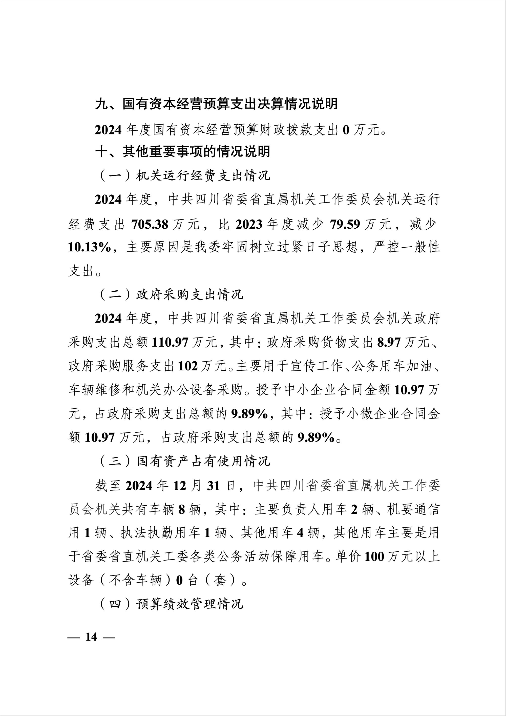 2024年度中共四川省委省直屬機關(guān)工作委員會機關(guān)單位決算