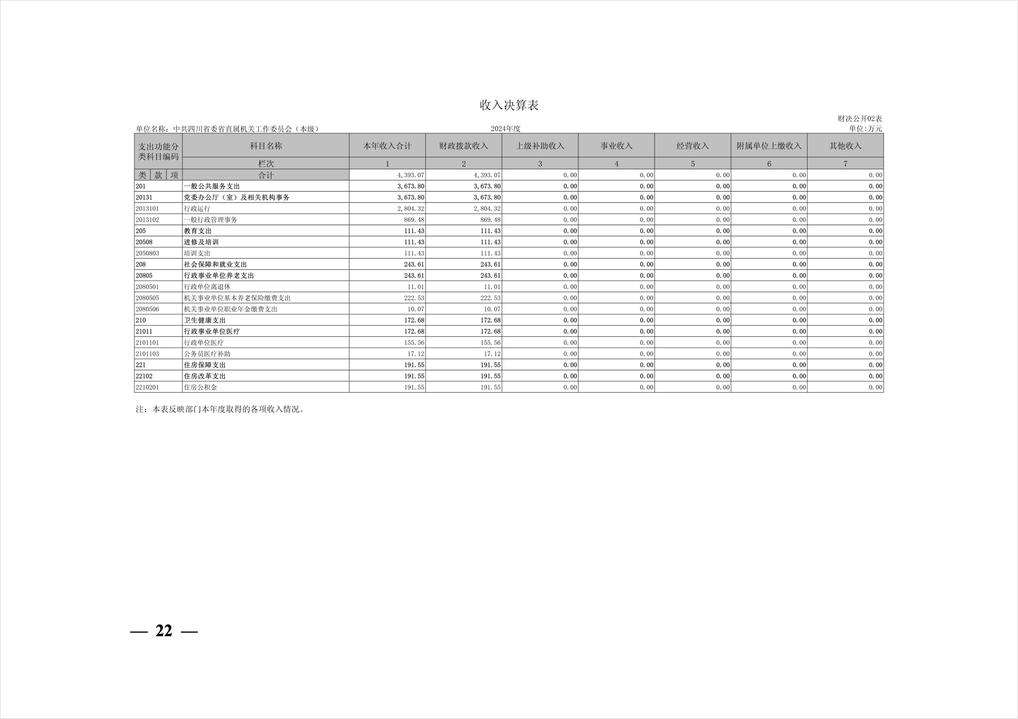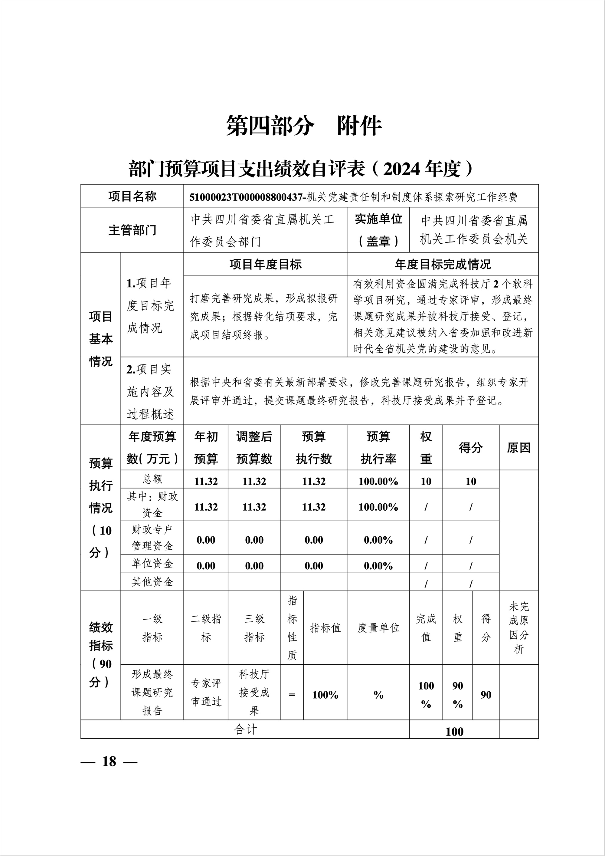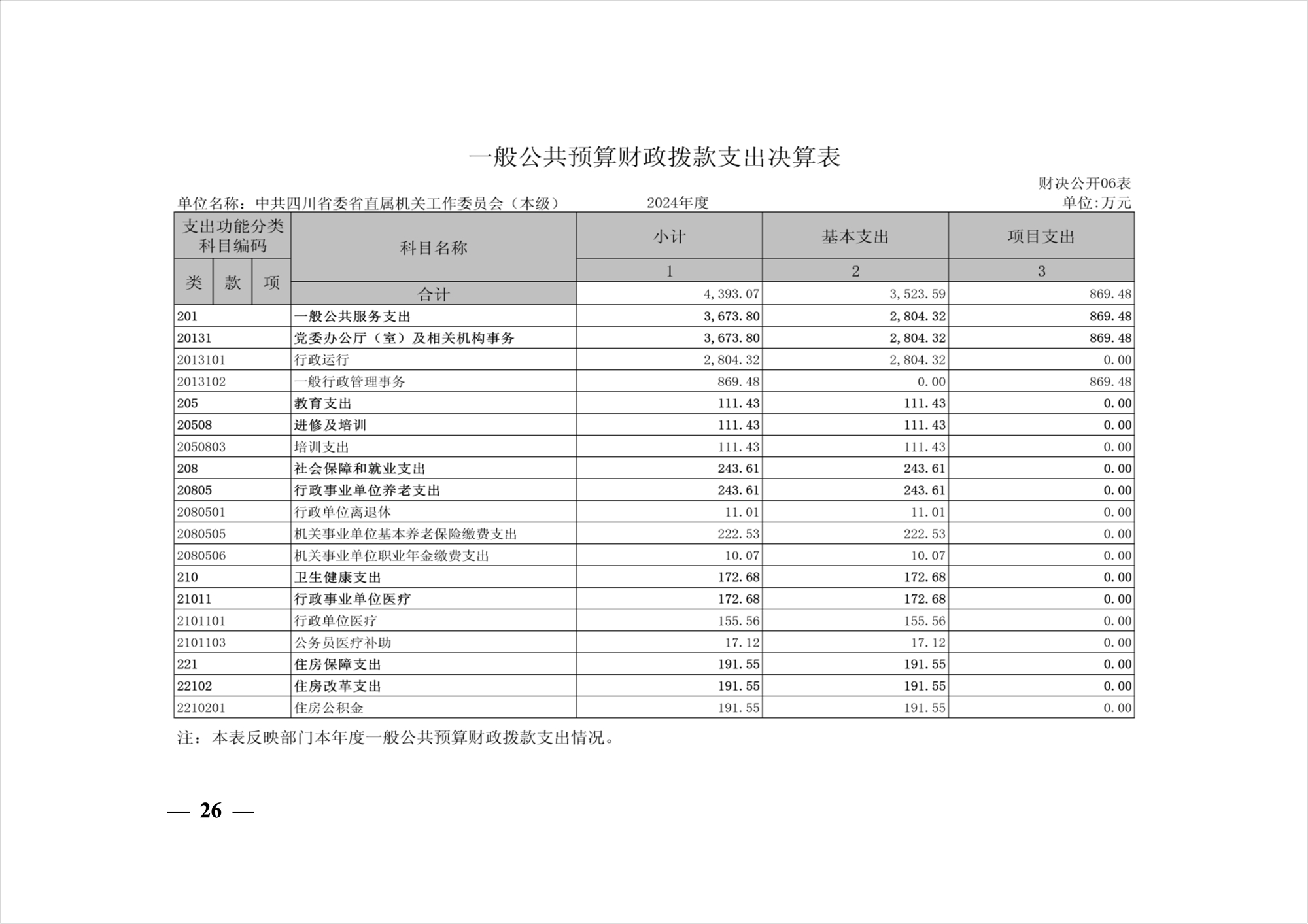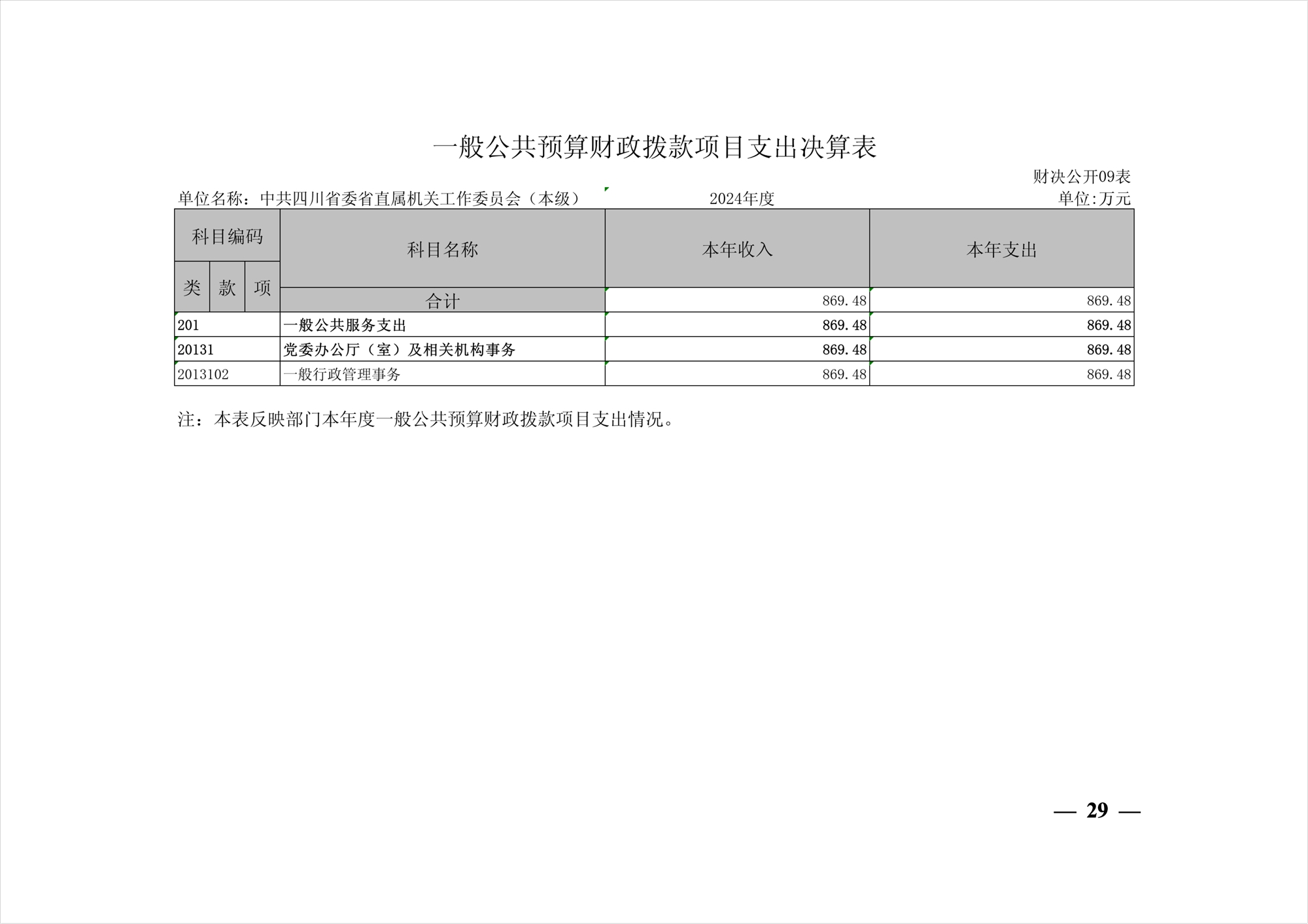 2024年度中共四川省委省直屬機關(guān)工作委員會機關(guān)單位決算