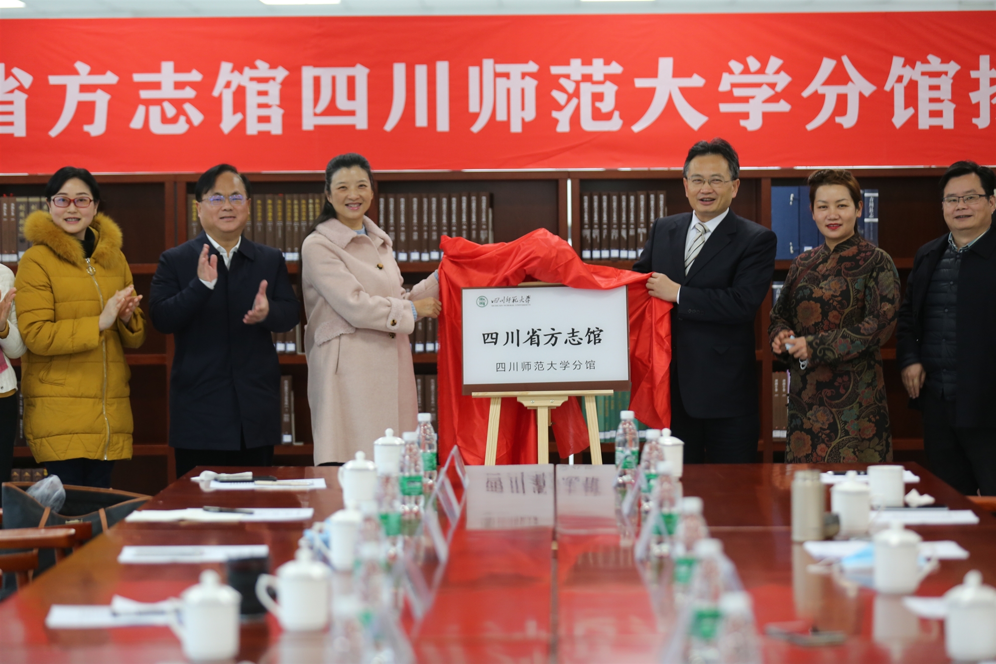 12月11日上午,四川省內(nèi)第五所高校方志分館——四川省方志館四川師范大學(xué)分館開館揭牌儀式在四川師范大學(xué)成龍校區(qū)圖書館明德文庫舉行。四川省地方志工作辦公室黨組成員、機關(guān)黨委書記鄧瑜,四川師范大學(xué)副校長王川共同為分館揭牌。四川師范大學(xué)圖書與檔案信息中心、歷史文化與旅游學(xué)院、圖書館相關(guān)人員參加揭牌儀式。
