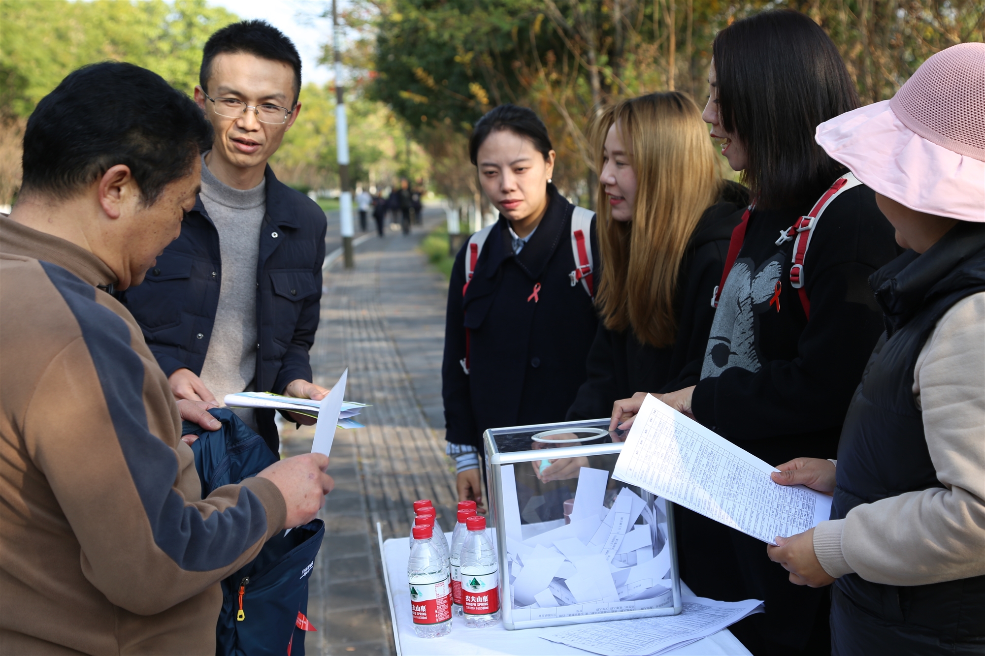知識宣傳,為“艾”發(fā)聲。在活動(dòng)路線設(shè)置5個(gè)艾防知識競答點(diǎn),每點(diǎn)位預(yù)備100道知識問答題,并依據(jù)答題數(shù)量兌換相應(yīng)小禮品;在活動(dòng)路線懸掛包含“凝聚社會力量 合力共抗艾滋”“手牽手預(yù)防艾滋 心連心關(guān)愛生命”等數(shù)條艾滋病防治宣傳標(biāo)語;為每位參與人員和過往群眾發(fā)放融合防艾、禁毒、健康知識等內(nèi)容艾防宣傳材料2000余份,營造全民廣泛參與艾滋病防治的良好氛圍。