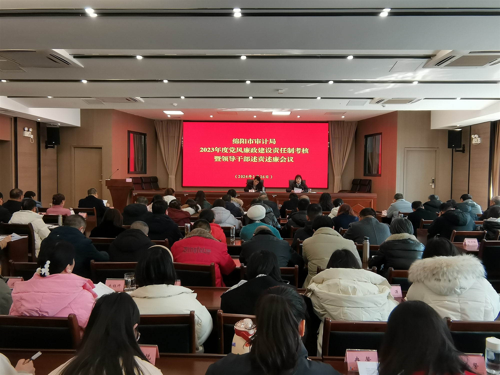 1月26日,綿陽市審計局召開2023年度黨風(fēng)廉政建設(shè)責(zé)任制考核暨領(lǐng)導(dǎo)干部述責(zé)述廉會,局黨組書記、局長徐強主持會議,市紀(jì)委監(jiān)委駐市國資委紀(jì)檢監(jiān)察組到會指導(dǎo)并開展節(jié)前集體廉政談話,局領(lǐng)導(dǎo)班子成員、機關(guān)全體干部職工、退休干部代表、服務(wù)對象代表80余人參加會議。