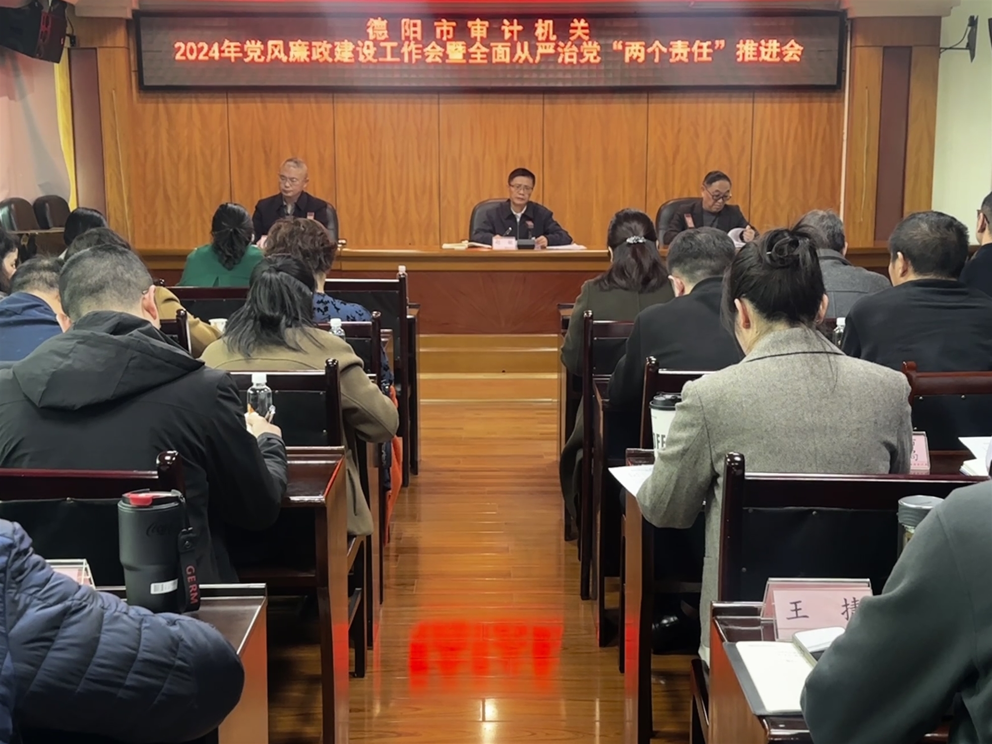 近日,德陽市審計機(jī)關(guān)召開2024年黨風(fēng)廉政建設(shè)工作會暨全面從嚴(yán)治黨“兩個責(zé)任”推進(jìn)會,總結(jié)上年度工作,安排部署2024年重點(diǎn)任務(wù)。