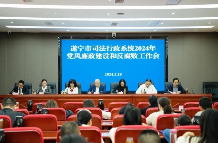 近日,遂寧市司法局召開了2024年度全市司法行政系統(tǒng)全面從嚴(yán)治黨、黨風(fēng)廉政建設(shè)和反腐敗工作會(huì)議,全面貫徹落實(shí)二十屆中央紀(jì)委三次全會(huì)、省紀(jì)委十二屆三次全會(huì)、市紀(jì)委八屆四次全會(huì)精神,研究分析當(dāng)前反腐敗斗爭(zhēng)形勢(shì),謀劃部署2024年相關(guān)工作。