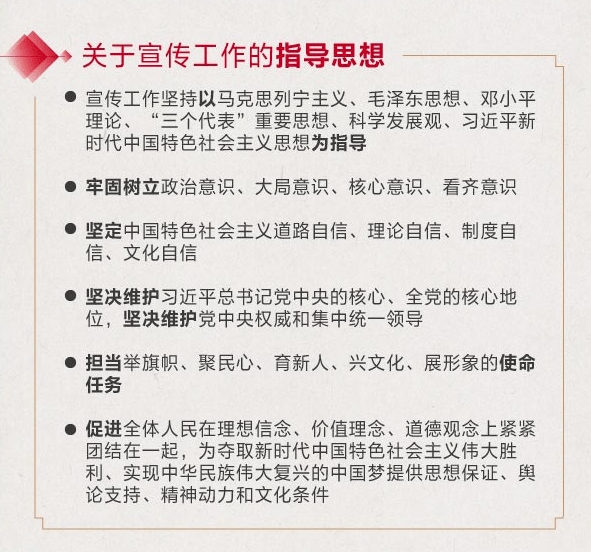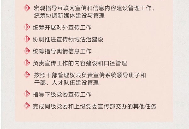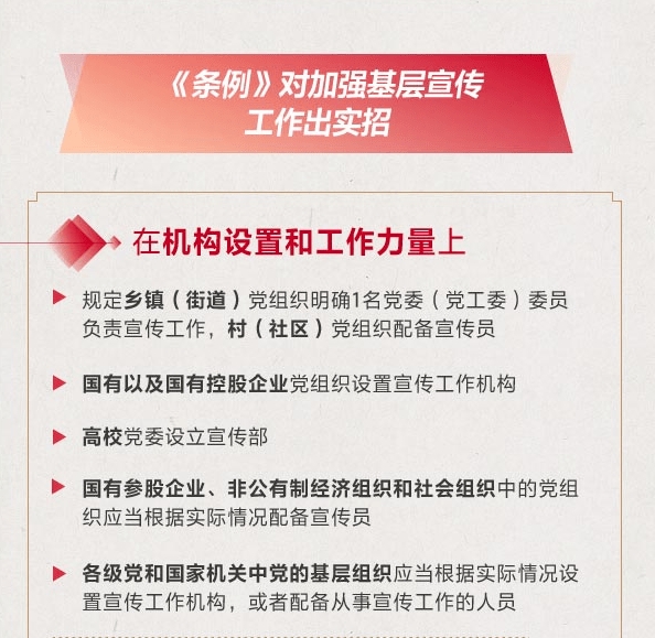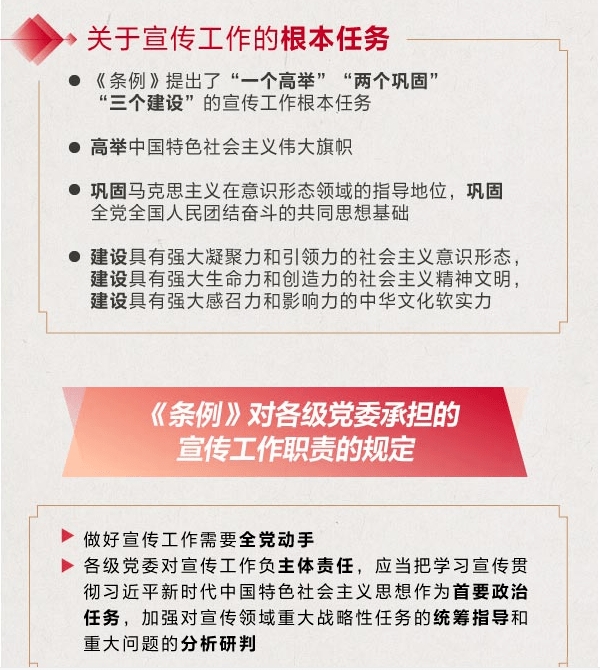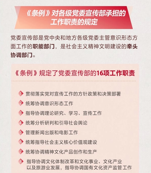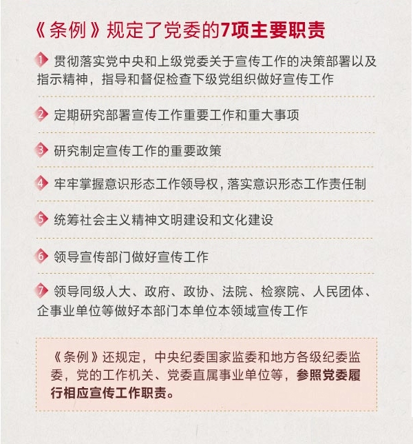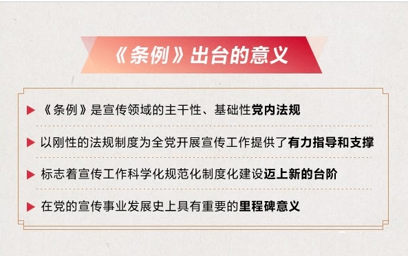 通知要求,各級(jí)黨委(黨組)要把學(xué)習(xí)貫徹《條例》作為一項(xiàng)重要政治任務(wù),抓好宣傳解讀和督促檢查,進(jìn)一步加強(qiáng)黨對(duì)宣傳工作的全面領(lǐng)導(dǎo),確保黨中央關(guān)于宣傳工作的重大決策部署落到實(shí)處。