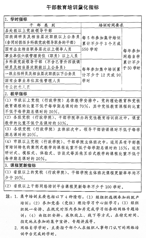 (一)完善制度機(jī)制。著力構(gòu)建科學(xué)規(guī)范、系統(tǒng)集成、協(xié)同高效、執(zhí)行有力的干部教育培訓(xùn)制度體系,制定加強(qiáng)國有企業(yè)領(lǐng)導(dǎo)人員培訓(xùn)工作意見、省(自治區(qū)、直轄市)黨性教育干部學(xué)院高質(zhì)量發(fā)展指導(dǎo)意見等。完善需求調(diào)研、計劃生成會商機(jī)制,統(tǒng)籌干部教育培訓(xùn)與公務(wù)員培訓(xùn)、黨員教育培訓(xùn),加強(qiáng)干部教育培訓(xùn)主管部門與行業(yè)主管部門、培訓(xùn)機(jī)構(gòu)、干部所在單位溝通協(xié)商。完善組織調(diào)訓(xùn)機(jī)制,嚴(yán)格執(zhí)行調(diào)訓(xùn)審批、報備等規(guī)定,完善點名調(diào)訓(xùn)和補(bǔ)訓(xùn)制度,實現(xiàn)科學(xué)調(diào)訓(xùn)、精準(zhǔn)調(diào)訓(xùn),定期通報調(diào)訓(xùn)情況。完善雙重管理干部培訓(xùn)機(jī)制。完善東西部協(xié)作和定點幫扶、對口支援培訓(xùn)機(jī)制。