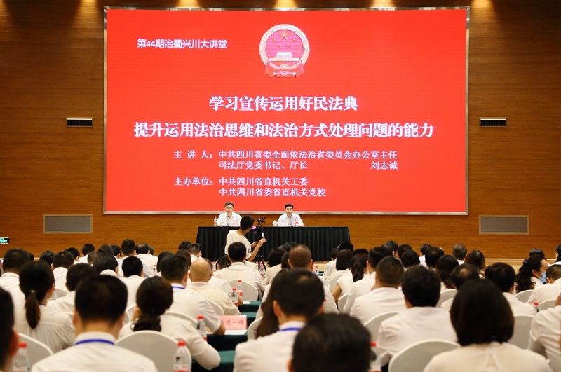 為深入貫徹落實習(xí)近平總書記全面依法治國新理念新思想新戰(zhàn)略和黨的十九屆四中全會精神,7月3日上午,省直機關(guān)工委、省委省直機關(guān)黨校舉辦第四十四期“治蜀興川大講堂”,省委依法治省辦公室主任,司法廳黨委書記、廳長劉志誠作了題為《學(xué)習(xí)宣傳運用好民法典 提升運用法治思維和法治方式處理問題的能力》的精彩講授。省直機關(guān)工委、省直機關(guān)黨校教職工、第93期處級干部進修班、省直機關(guān)年輕干部鑄魂工程培訓(xùn)班共260余人聆聽講座。省直機關(guān)工委常務(wù)副書記、省委省直機關(guān)黨校校長王承先出席并主持講座。