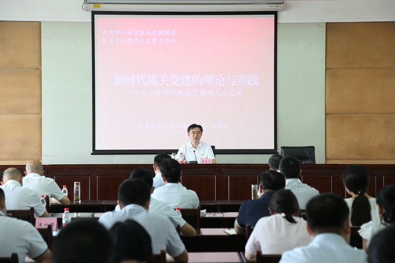 為深入學(xué)習(xí)貫徹習(xí)近平總書(shū)記關(guān)于機(jī)關(guān)黨的建設(shè)的重要論述,7月22日下午,省信訪局邀請(qǐng)省直機(jī)關(guān)工委常務(wù)副書(shū)記王承先為全局黨員干部作機(jī)關(guān)黨建專題講座,省政府副秘書(shū)長(zhǎng)、省信訪局黨組書(shū)記、局長(zhǎng)陳澤廣主持講座,全局干部職工、實(shí)踐鍛煉干部參加講座。