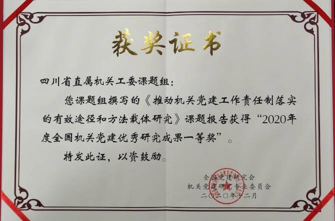 近日,中央和國(guó)家機(jī)關(guān)工委召開(kāi)了全國(guó)黨建研究會(huì)機(jī)關(guān)專(zhuān)委會(huì)第十八次委員會(huì)議暨理論研討會(huì),表彰了2020年度全國(guó)機(jī)關(guān)黨建課題研究?jī)?yōu)秀成果,省直機(jī)關(guān)工委論文《推動(dòng)機(jī)關(guān)黨建工作責(zé)任制落實(shí)的有效途徑和方法載體研究》榮獲一等獎(jiǎng),這是繼2019年論文《破解機(jī)關(guān)黨建與業(yè)務(wù)工作“兩張皮”問(wèn)題研究》被評(píng)為全國(guó)機(jī)關(guān)黨建優(yōu)秀研究成果一等獎(jiǎng)后,再次榮獲全國(guó)一等獎(jiǎng)。這將激勵(lì)我們進(jìn)一步加強(qiáng)機(jī)關(guān)黨建高質(zhì)量發(fā)展的實(shí)踐探索與理論研究,持續(xù)走在前列,再接再厲、再創(chuàng)佳績(jī)。
