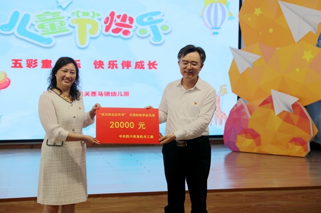 王承先同志代表省直機(jī)關(guān)工委為孩子們送去節(jié)日的祝福,為教職工送去親切的慰問。省直機(jī)關(guān)工委副書記唐功江等領(lǐng)導(dǎo)向兩位困難職工送上慰問金。