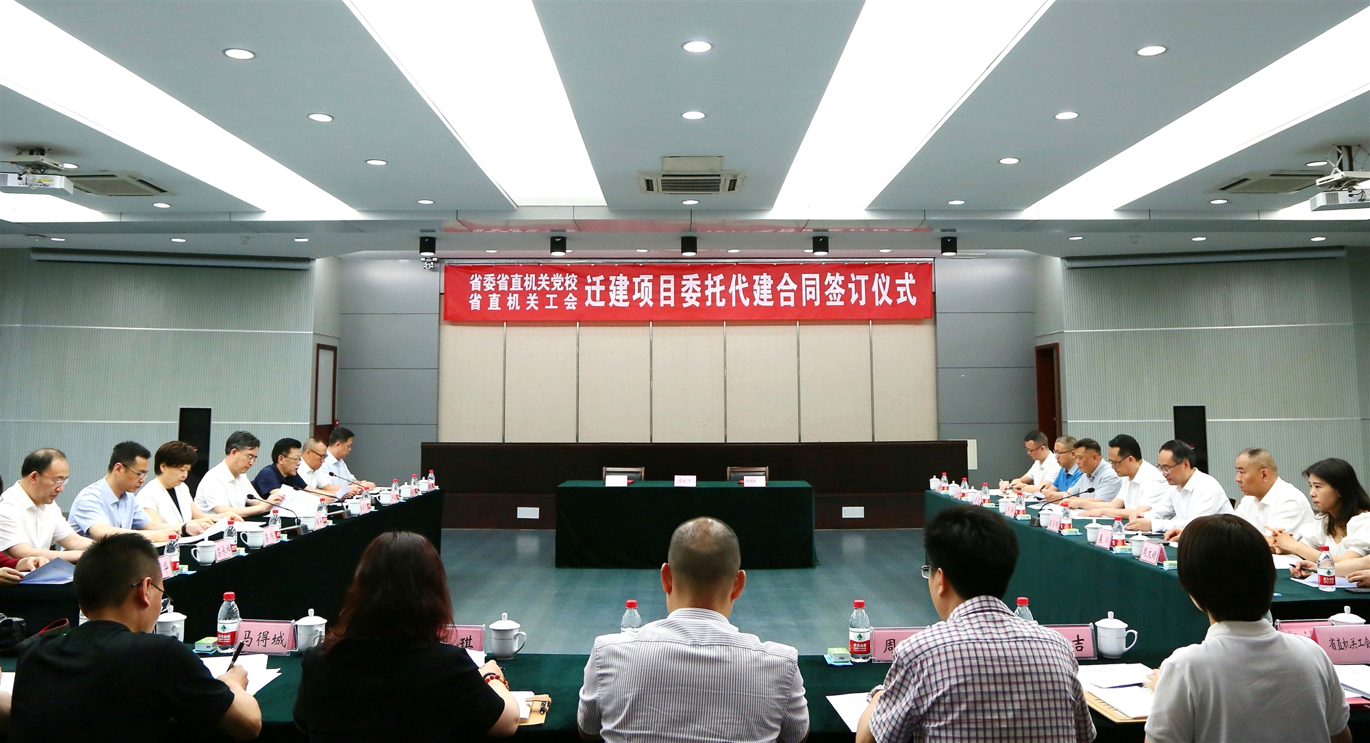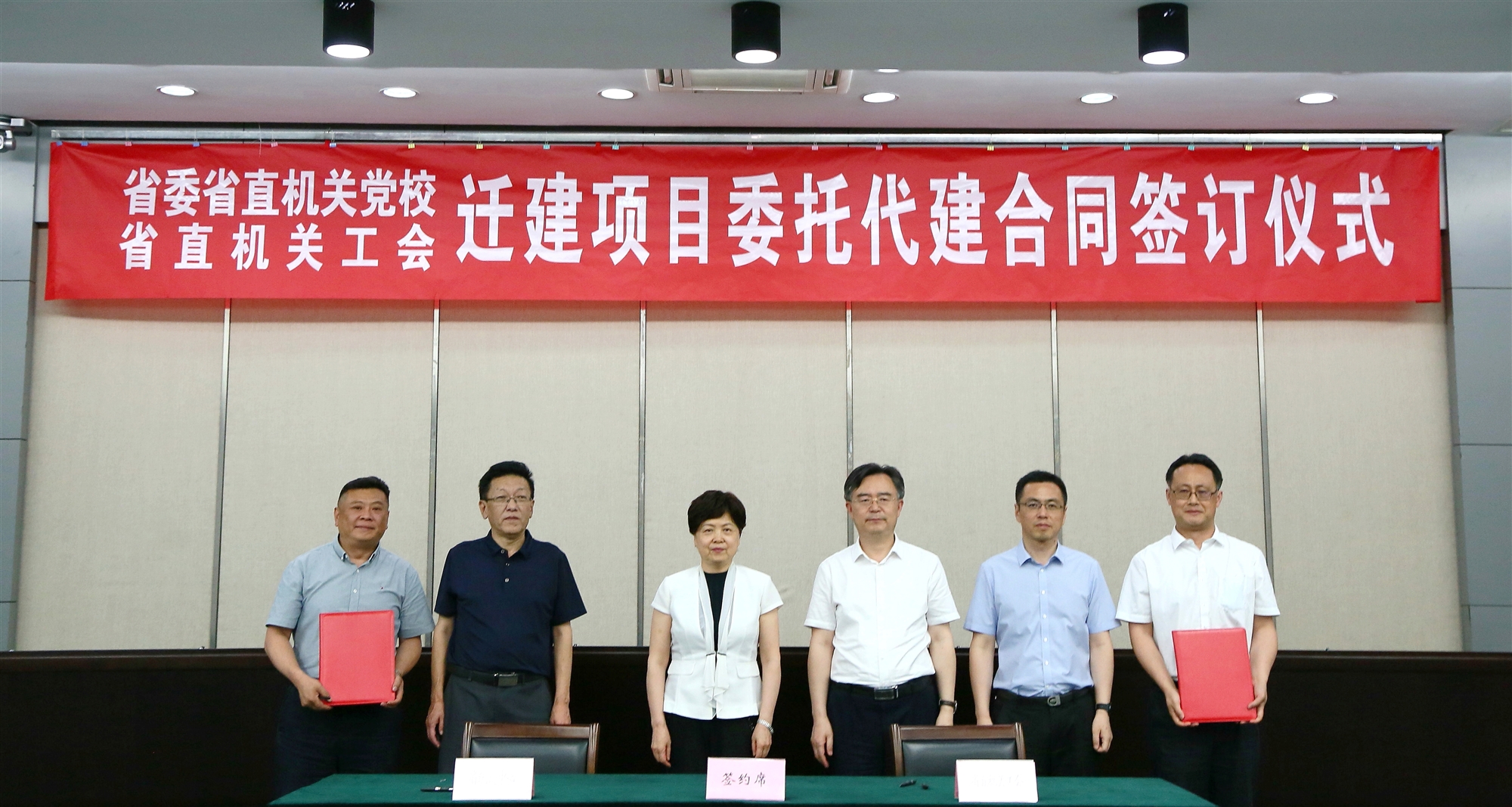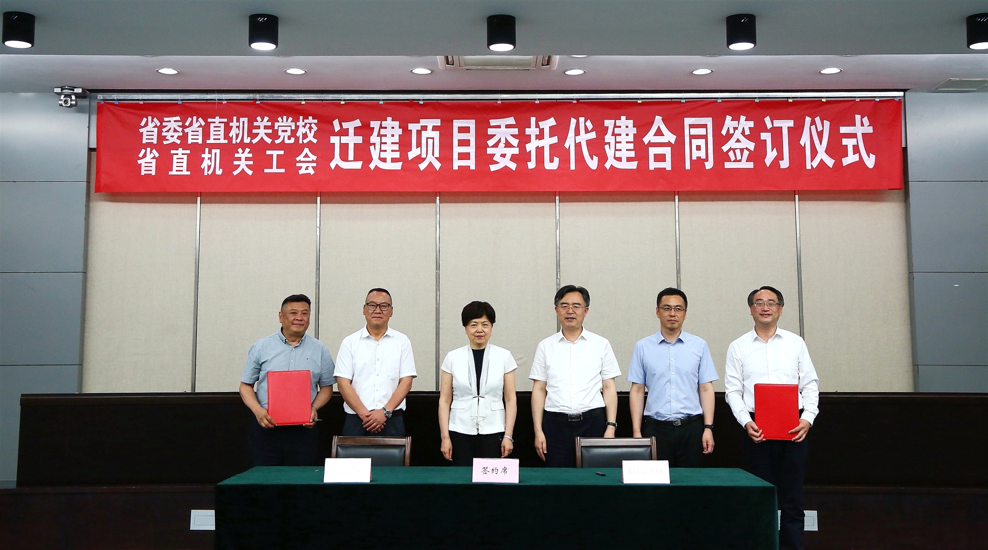 6月1日,省委省直機(jī)關(guān)黨校校區(qū)遷建、省直機(jī)關(guān)工會(huì)職工教育活動(dòng)陣地項(xiàng)目委托代建合同簽訂儀式成功舉行。省直機(jī)關(guān)工委常務(wù)副書記、省委省直機(jī)關(guān)黨校校長(zhǎng)王承先,省政府副秘書長(zhǎng)、省機(jī)關(guān)事務(wù)管理局黨組書記、局長(zhǎng)郭春英出席會(huì)議并講話,省直機(jī)關(guān)工委副書記張平森主持簽訂儀式。