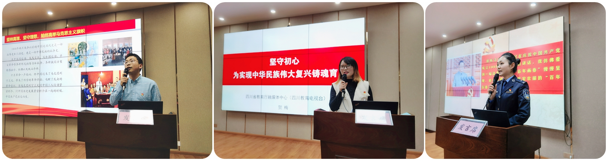 來自公安廳的魏瀟說,我是一名基層人民警察,也是四川眾多警察中最平凡普通的一員?;貞浧鹑杖找挂?、默默無聞的堅守,她堅定地說道,“苦嗎?苦!累嗎?累!后悔嗎?絕不后悔!因為我們有一個最樸素的理想,那就是守護人民平安。”幾代人前赴后繼,一百年春華秋實,人民警察用血肉之軀守護萬家燈火,用擔當奮斗踐行著誓言。