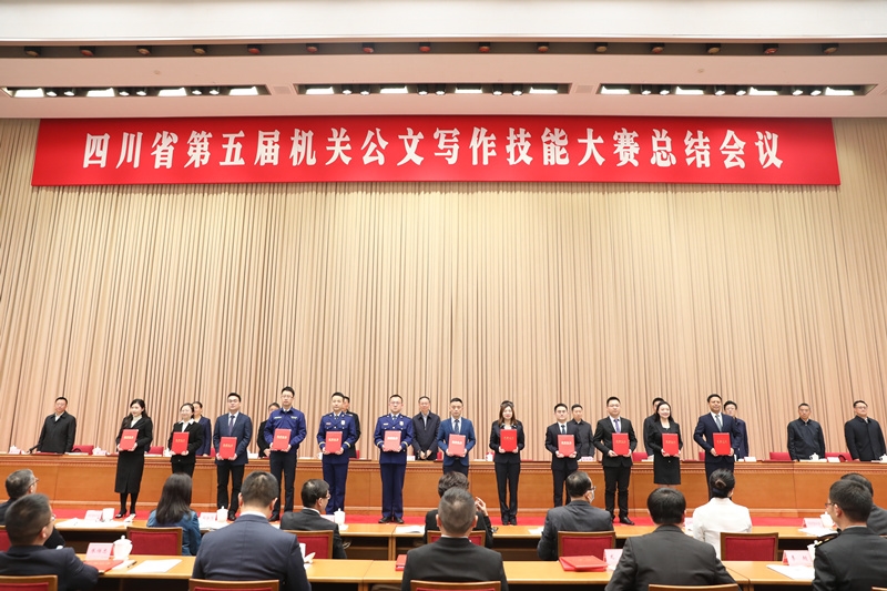 會(huì)上,相關(guān)領(lǐng)導(dǎo)為36位獲獎(jiǎng)選手代表和12個(gè)獲獎(jiǎng)集體頒獎(jiǎng)。省委組織部等9家單位作為獲獎(jiǎng)單位代表作了交流,省委辦公廳李思詩(shī)等3名同志作為獲獎(jiǎng)選手代表作了發(fā)言。據(jù)悉,四川省第五屆機(jī)關(guān)公文寫作技能大賽共有來(lái)自四川全省96個(gè)省直部門(單位)和21個(gè)市(州)的1301名機(jī)關(guān)干部參賽。大賽評(píng)選出省直黨群組、省直政府組、市州機(jī)關(guān)組三個(gè)組別及領(lǐng)導(dǎo)講話、調(diào)研報(bào)告、工作意見(jiàn)三個(gè)類別的一二三等獎(jiǎng)共271個(gè)(一等獎(jiǎng)27個(gè),二等獎(jiǎng)63個(gè),三等獎(jiǎng)181個(gè)),同時(shí)按照程序?qū)Ω鹘M別綜合成績(jī)名列前茅的選手分別推薦“四川省五一勞動(dòng)獎(jiǎng)?wù)?rdquo;“四川青年五四獎(jiǎng)?wù)?rdquo;“四川省三八紅旗手”候選人各3名,并對(duì)組織參賽好、選手成績(jī)好的單位(集體)授予優(yōu)秀組織獎(jiǎng)和組織獎(jiǎng)。