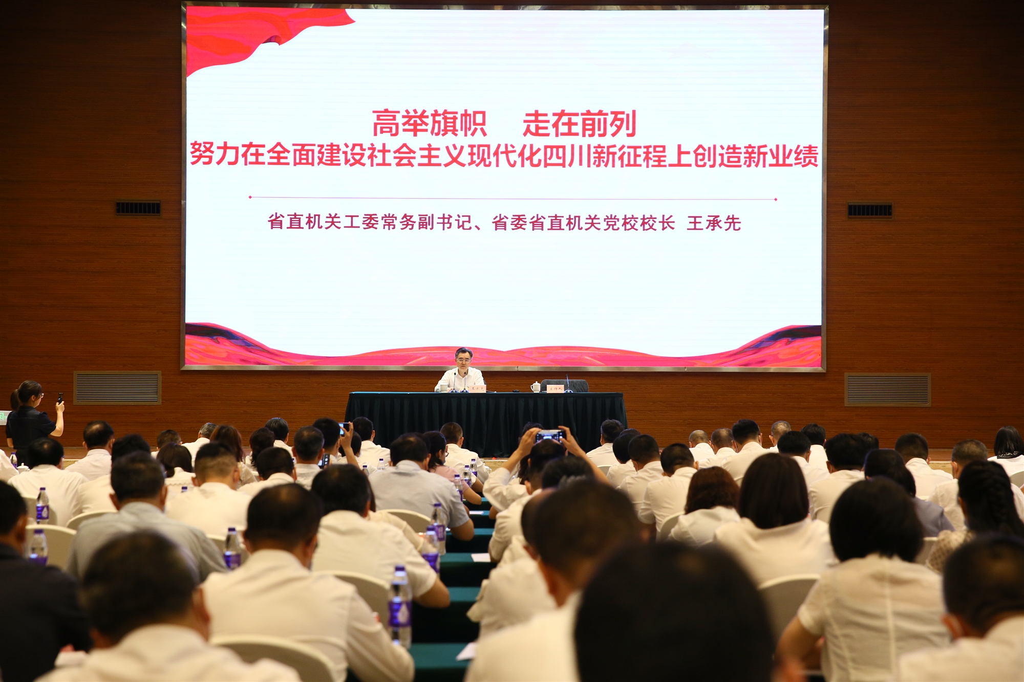 宣講報告會上,王承先同志以《高舉旗幟 走在前列 努力在全面建設(shè)社會主義現(xiàn)代化四川新征程上創(chuàng)造新業(yè)績》為題,從深刻領(lǐng)悟習(xí)近平總書記來川視察重要指示精神、深刻認(rèn)識省第十二次黨代會的豐富內(nèi)涵和精神實(shí)質(zhì)、以趕考姿態(tài)學(xué)習(xí)宣傳貫徹習(xí)近平總書記來川視察重要指示精神和省第十二次黨代會精神等三個方面進(jìn)行了深入闡釋、全面導(dǎo)讀和系統(tǒng)講解,并就省直機(jī)關(guān)扎實(shí)做好學(xué)習(xí)宣傳貫徹工作、切實(shí)抓好各項工作任務(wù)落實(shí)、“提高五種能力、五個走在前列”等提出明確要求,做出安排部署。