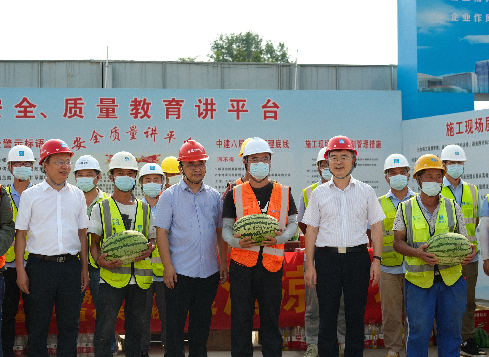 8月16日上午,省政府副秘書長、省機(jī)關(guān)事務(wù)管理局黨組書記、局長謝民,省直機(jī)關(guān)工委常務(wù)副書記、省委省直機(jī)關(guān)黨校校長王承先一行到省委省直機(jī)關(guān)黨校校區(qū)遷建項(xiàng)目和省直機(jī)關(guān)職工教育活動(dòng)陣地項(xiàng)目現(xiàn)場開展送清涼慰問活動(dòng)。