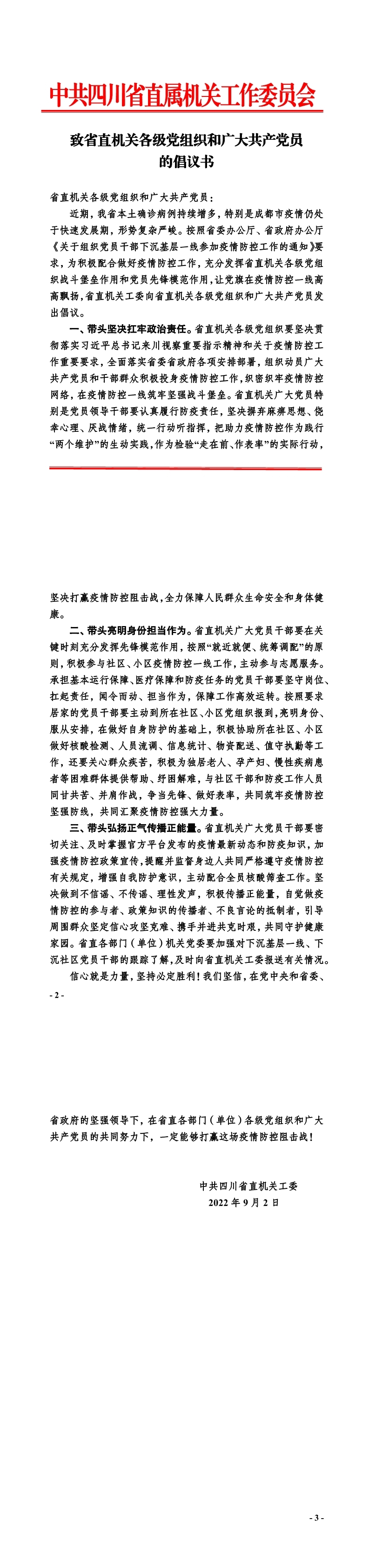 致省直機(jī)關(guān)各級(jí)黨組織和廣大共產(chǎn)黨員的倡議書