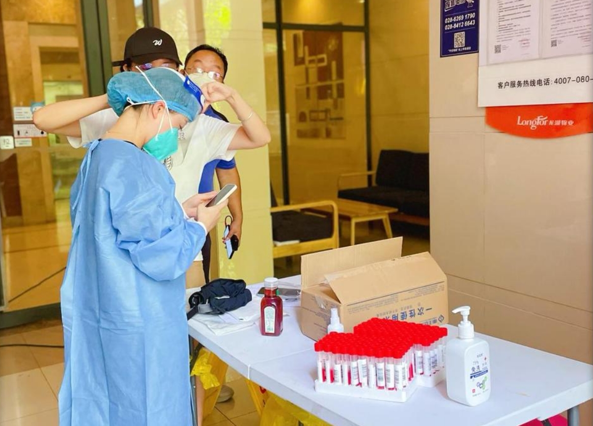 (四川省醫(yī)療保障局志愿者在小區(qū)參與疫情防控工作。四川省醫(yī)療保障局供圖)