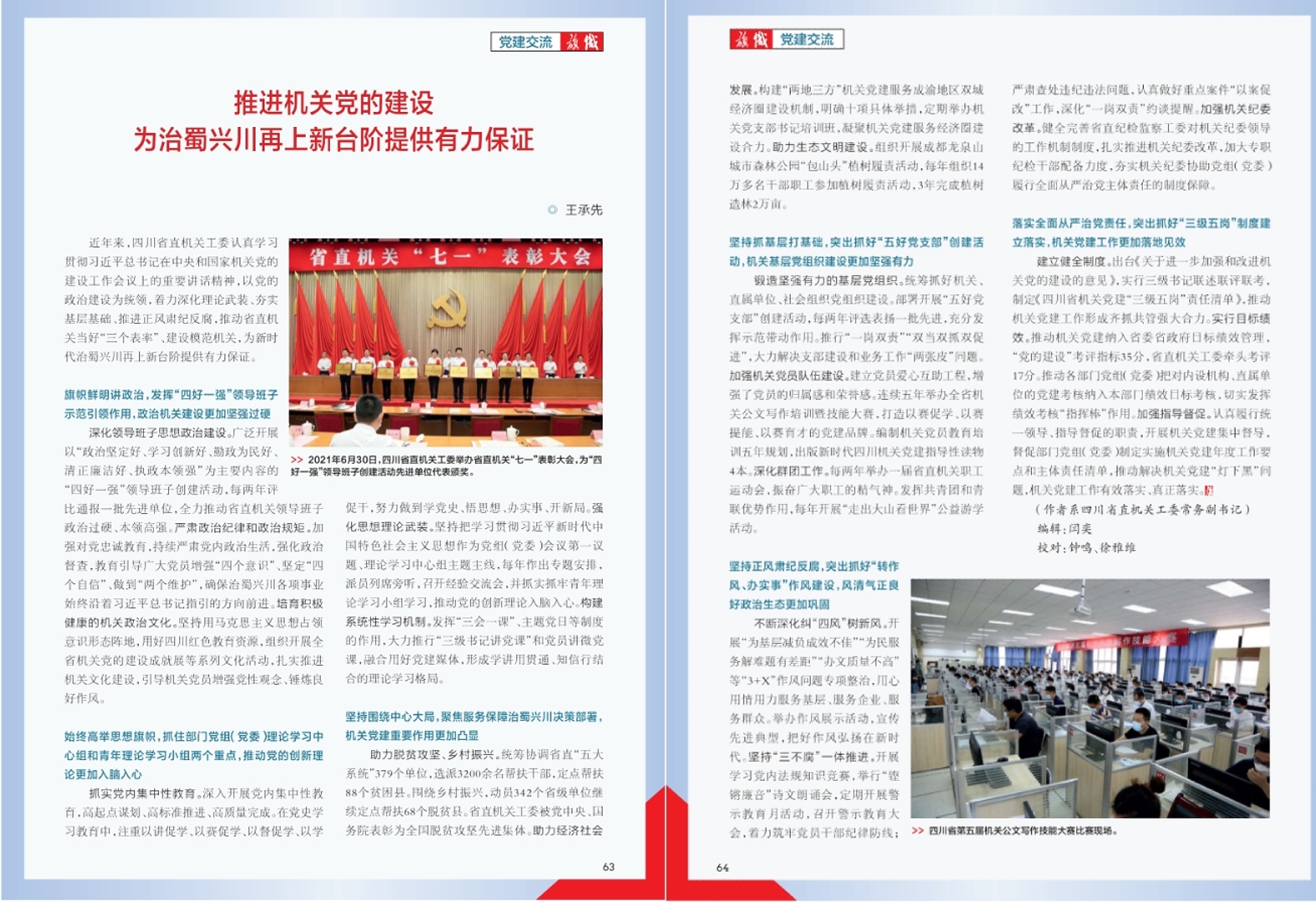 推進(jìn)機(jī)關(guān)黨的建設(shè) 為治蜀興川再上新臺(tái)階提供有力保證