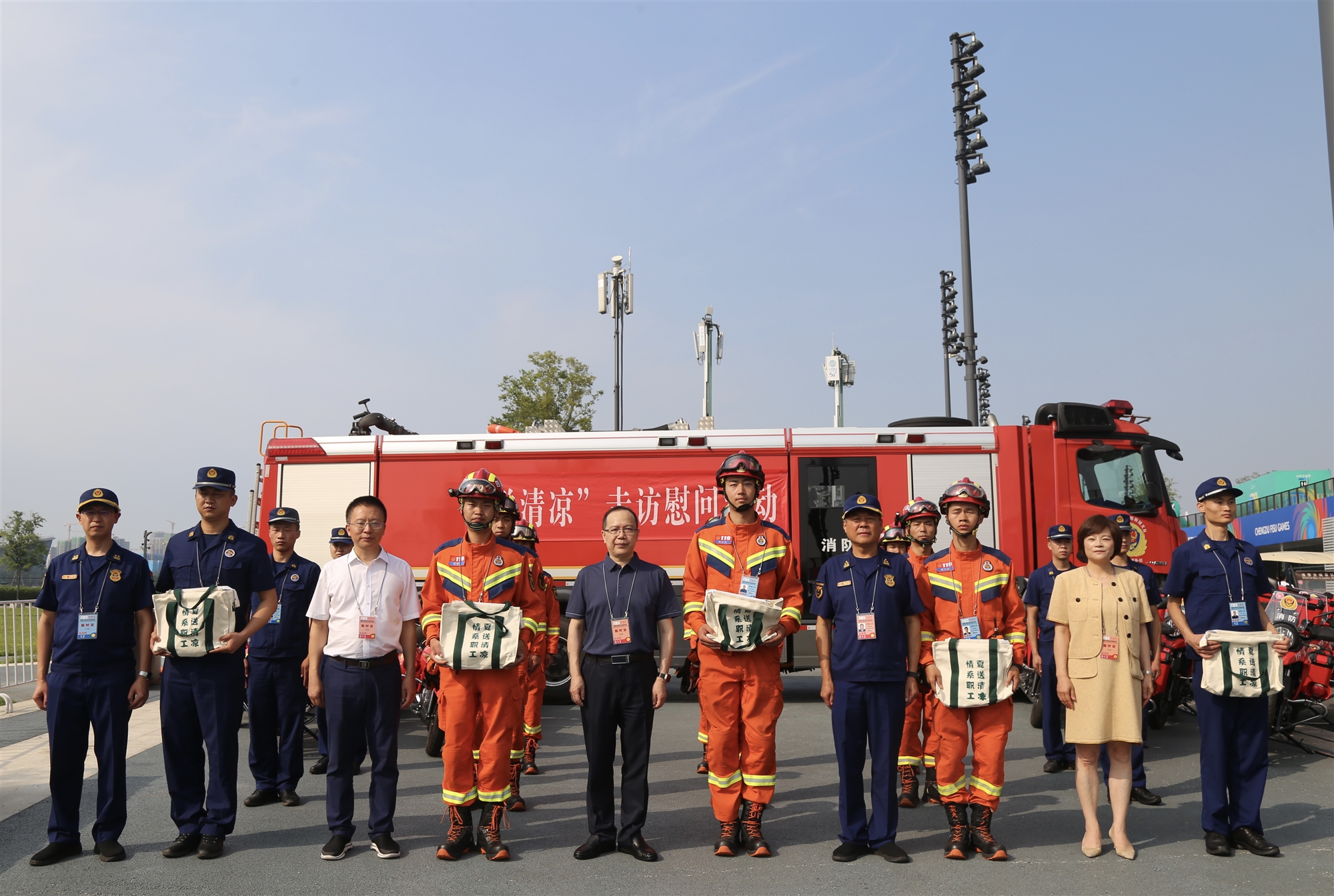 黃傳龍一行先后來到成都大運(yùn)會(huì)主體育場(chǎng)所在地東安湖體育公園、天府國(guó)際機(jī)場(chǎng)T1航站樓入境大廳,看望慰問冒著酷暑連續(xù)奮戰(zhàn)的公安廳特勤局隊(duì)員、四川消防救援總隊(duì)指戰(zhàn)員以及成都海關(guān)和四川出入境邊防檢查總站的干部職工,仔細(xì)詢問他們工作和生活情況,并將藿香正氣液、人丹、夏桑菊、清涼油等防暑降溫物品送到大家手中,叮囑大家在認(rèn)真工作的同時(shí),要做好自我保護(hù)、保重身體健康。