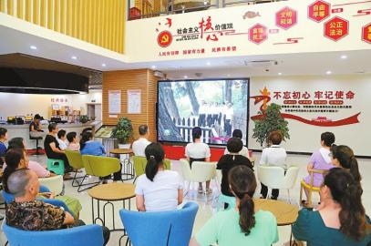 7月29日晚,瀘州市合江縣符陽街道桂圓林社區(qū)干部群眾收看習(xí)近平總書記來川視察的新聞報道。盧海軍 攝(C視覺)