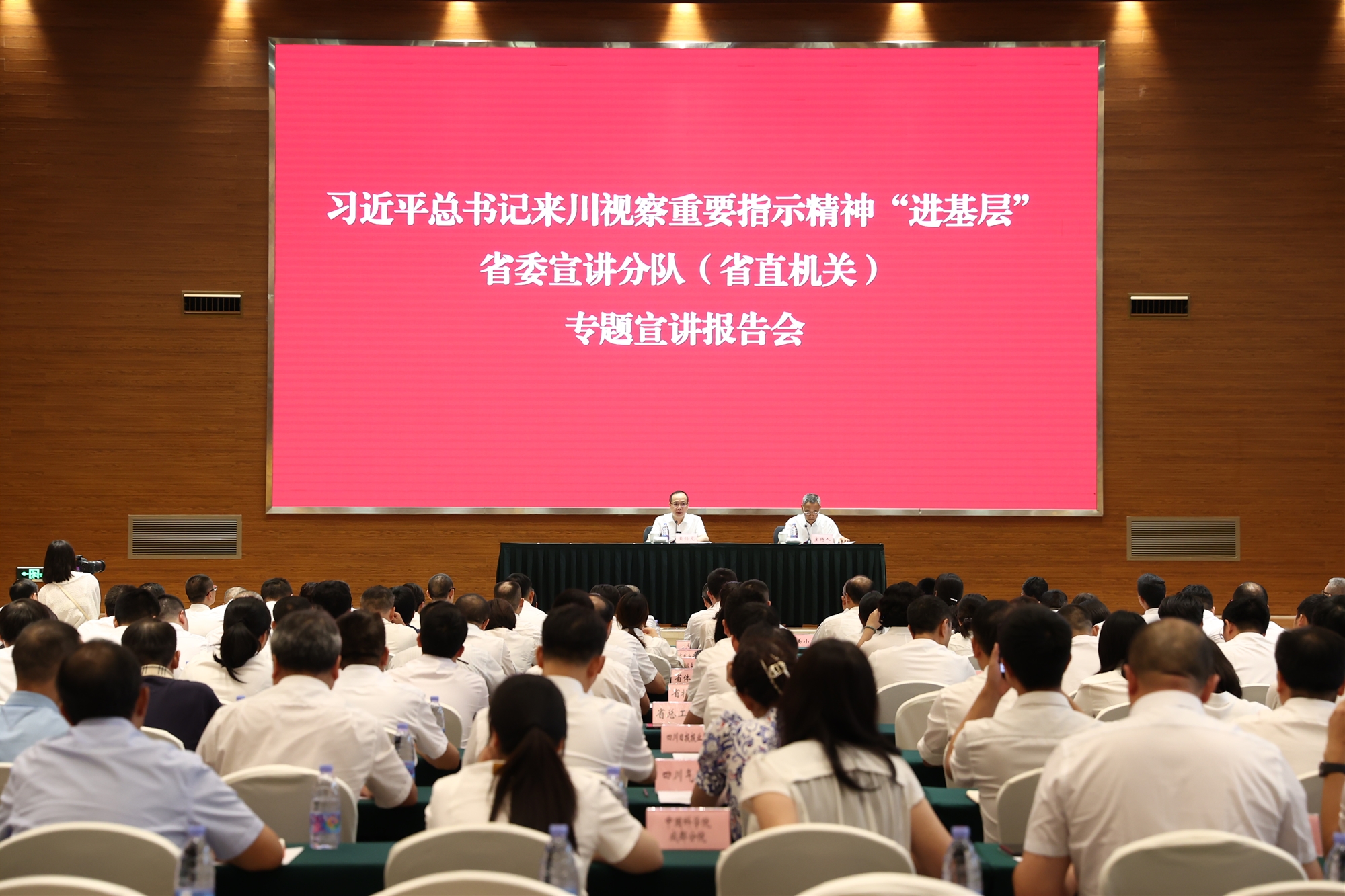黃傳龍同志以《學習貫徹習近平總書記來川視察重要指示精神 以高質量機關黨建服務保障四川現(xiàn)代化建設》為題,從充分認識習近平總書記來川視察并出席成都大運會有關活動的重大意義,準確把握習近平總書記來川視察重要指示的豐富內涵、核心要義和實踐要求,堅定推動習近平總書記來川視察重要指示精神不折不扣落地落實,以高質量機關黨建推動習近平總書記來川視察重要指示精神落地落實等四個方面作了一場政治鮮明、內容豐富、深厚透徹的宣講報告,并就省直機關扎實做好學習宣傳貫徹工作、切實抓好各項工作任務落實等提出明確要求,作出安排部署。