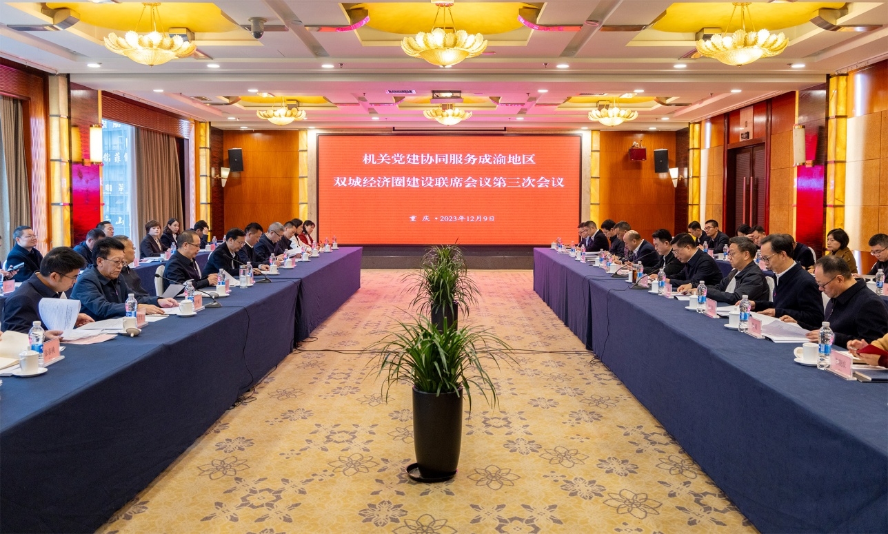 2023年12月9日,四川省直機(jī)關(guān)工委與重慶市委直屬機(jī)關(guān)工委在渝召開(kāi)機(jī)關(guān)黨建協(xié)同服務(wù)成渝地區(qū)雙城經(jīng)濟(jì)圈建設(shè)第三次聯(lián)席會(huì)議。