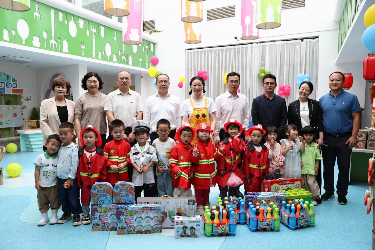 黃傳龍一行觀看了小朋友們表演的舞蹈,參觀了以“友好童樂 玩轉(zhuǎn)盒子”為主題的游戲活動,并現(xiàn)場與小朋友們互動。黃傳龍表達了對幼教工作者的慰問和對小朋友們的節(jié)日祝福,希望幼兒園教職員工不忘初心使命,發(fā)揮全國示范幼兒園示范引領(lǐng)作用,在育人、育心方面積極作為,引導(dǎo)少年兒童從小童心向黨、厚植家國情懷,為建成社會主義現(xiàn)代化強國培養(yǎng)德智體美勞全面發(fā)展的接班人。