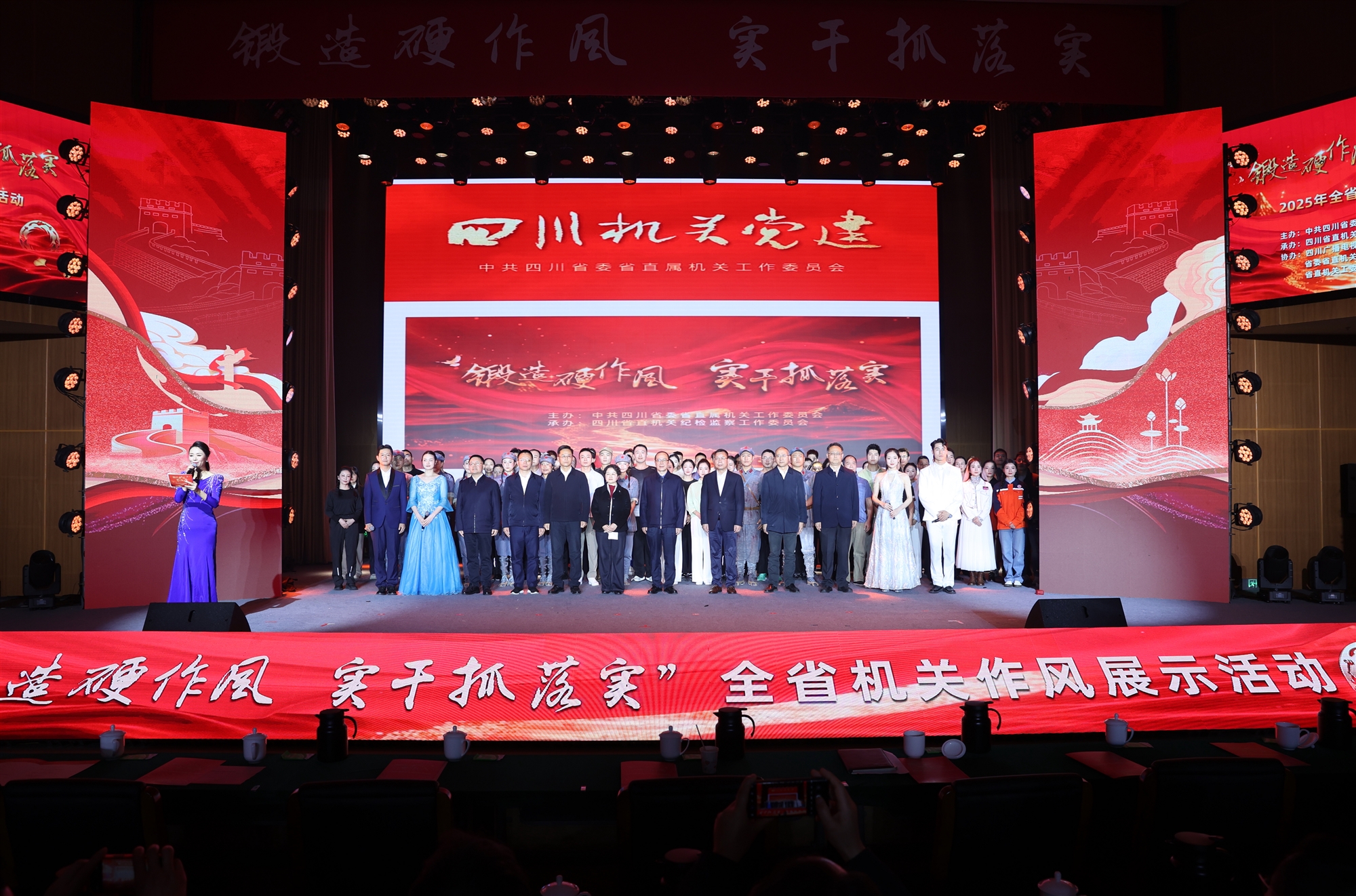 此次機(jī)關(guān)作風(fēng)展示活動(dòng),既是對(duì)全省機(jī)關(guān)作風(fēng)建設(shè)成果的一次全面檢閱,更是對(duì)持續(xù)深化作風(fēng)建設(shè)的再動(dòng)員、再部署?;顒?dòng)以藝術(shù)化的呈現(xiàn)方式傳遞實(shí)干導(dǎo)向,以沉浸式的體驗(yàn)?zāi)蹔^進(jìn)力量,激勵(lì)全省機(jī)關(guān)黨員干部始終發(fā)揚(yáng)自我革命精神,以釘釘子精神持續(xù)鞏固拓展作風(fēng)建設(shè)成效。觀演的機(jī)關(guān)黨員干部紛紛表示,將以此次活動(dòng)為契機(jī),進(jìn)一步鍛造硬作風(fēng)、實(shí)干抓落實(shí),把作風(fēng)建設(shè)成效轉(zhuǎn)化為推動(dòng)工作的強(qiáng)大動(dòng)力,凝心聚力推動(dòng)新時(shí)代新征程治蜀興川各項(xiàng)事業(yè)邁上新臺(tái)階,為奮力譜寫中國式現(xiàn)代化四川新篇章提供堅(jiān)強(qiáng)保障。