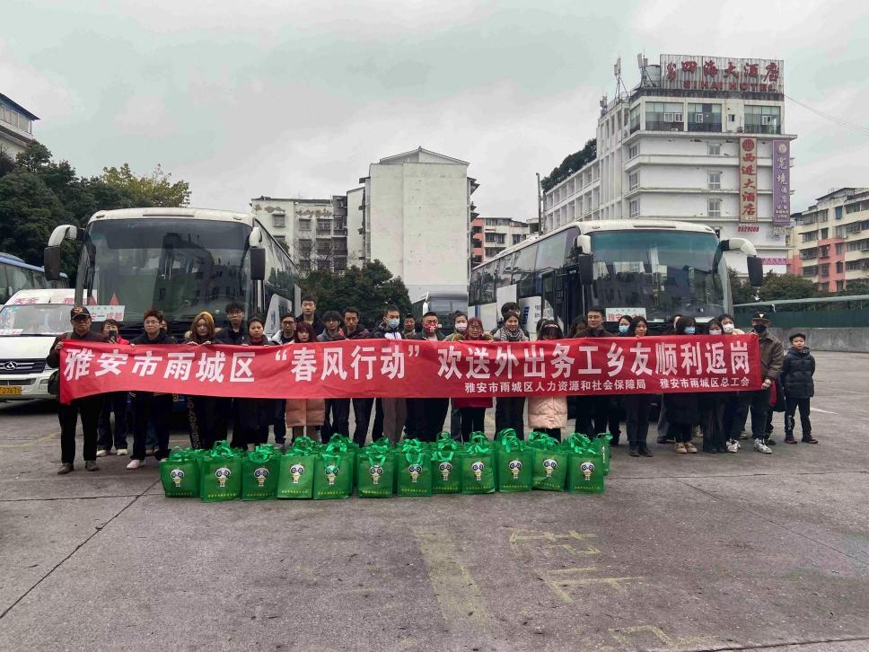 為深入貫徹黨的二十大精神、省委十二屆四次全會精神和市委五屆四次全會精神,切實(shí)做好農(nóng)民工外出務(wù)工順利返崗服務(wù)工作,積極營造全社會理解、尊重和關(guān)愛農(nóng)民工的濃厚氛圍,2月22日,雅安市雨城區(qū)總工會聯(lián)合區(qū)人社局開展雨城區(qū)“春風(fēng)行動”返崗農(nóng)民工關(guān)愛活動,組織一元返崗專車,送上含有毛巾、襪子、牙刷等生活用品的溫馨禮包,讓即將踏上外出務(wù)工路程的農(nóng)民工朋友感受到黨委政府和工會組織的溫暖。本次活動統(tǒng)籌資金1萬余元,開設(shè)返崗專車3趟,服務(wù)返崗農(nóng)民工100余人。