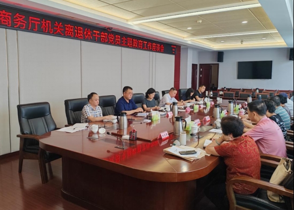 7月20日,商務廳召開離退休干部黨員學習貫徹習近平新時代中國特色社會主義思想主題教育工作座談會。廳黨組成員、副廳長尹奇志出席會議并講話。