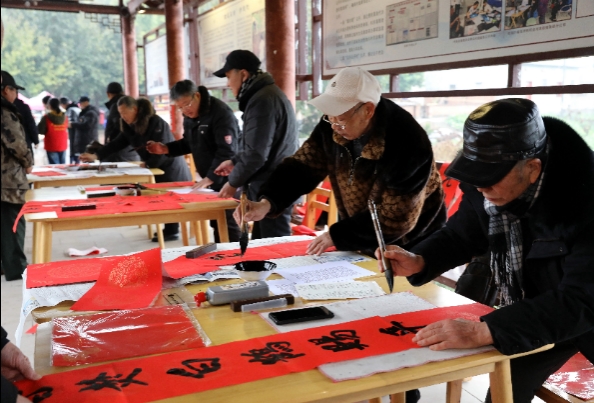此次活動(dòng)向村民送出春聯(lián)100幅、繪畫30幅、“福”字180張,向敬老院贈(zèng)送“富貴有余”繪畫作品一幅,以及大米、食用油、豬肉等生活物資。