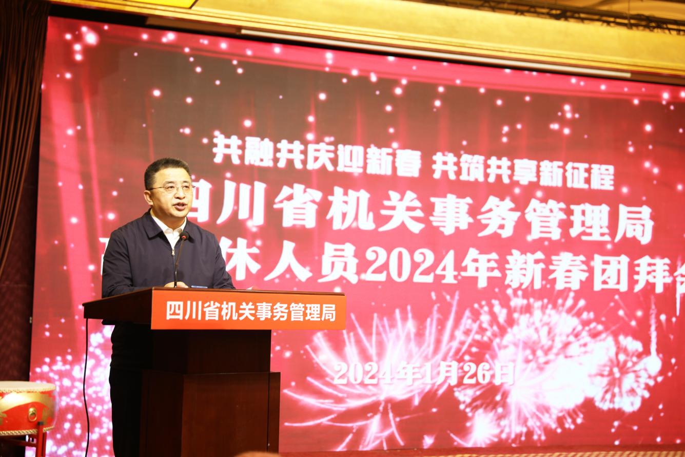 1月26日,四川省機關(guān)事務(wù)管理局召開工作情況通報暨離退休人員新春團拜會。省政府副秘書長,黨組書記、局長謝民向離退休老同志通報2023年全省機關(guān)事務(wù)工作情況,并代表局黨組向老領(lǐng)導(dǎo)、老同志致以誠摯的問候和美好祝愿,對他們?yōu)闄C關(guān)事務(wù)事業(yè)作出的重要貢獻表示衷心的感謝和崇高的敬意。局黨組成員、機關(guān)黨委書記張肅主持會議。