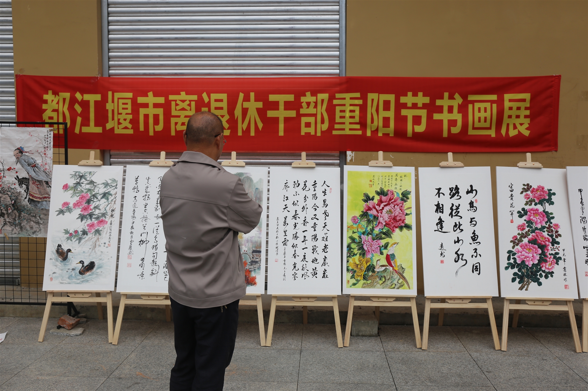 10月9日,由都江堰市委組織部、奎光塔街道、晚晴書(shū)畫(huà)社等共同舉辦的“永遠(yuǎn)跟黨走、奮進(jìn)新征程”重陽(yáng)節(jié)書(shū)畫(huà)展,在龍?zhí)稙成鐓^(qū)廣場(chǎng)開(kāi)展。