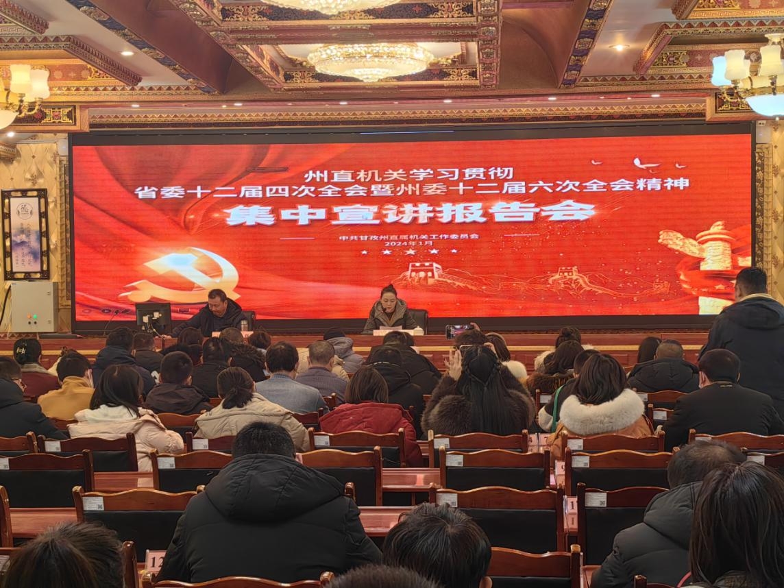 1月26日,甘孜州直工委舉辦學(xué)習(xí)貫徹省委十二屆四次全會(huì)暨州委十二屆六次全會(huì)精神宣講報(bào)告會(huì)。報(bào)告會(huì)采取分片區(qū)“送教上門”的方式分4個(gè)片區(qū)進(jìn)行,覆蓋基層黨組織76個(gè),黨員干部800余人。