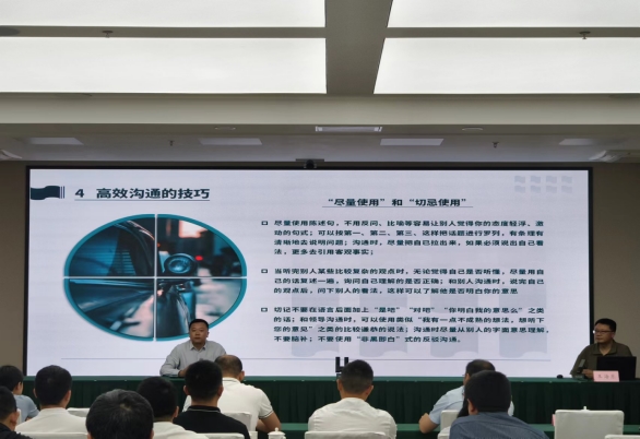 培訓會上,王海東老師圍繞溝通的前提和原則、溝通的基本要素、高效溝通的技巧、表達注意事項等方面,用通俗易懂的語言和大量生動鮮活的實例,通過案例解析、互動問答、模擬演練等方式,由淺入深地講授了在工作和生活中高效溝通的內(nèi)核價值和重要意義。