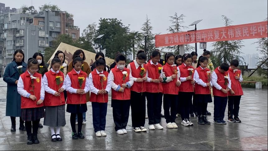 紅領(lǐng)巾講解員首先在紀(jì)念碑前鞠躬默哀,為邱少云烈士獻(xiàn)花,向烈士表達(dá)深切緬懷和崇高敬意。隨后跟隨講解員走進(jìn)邱少云烈士事跡陳列館,聆聽邱少云烈士的英勇事跡。通過展廳里的圖片、實(shí)物、文字,真切地感受了邱少云烈士“絕對忠誠、嚴(yán)守紀(jì)律、顧全大局、不怕犧牲”的革命精神,接受了一次深刻的思想洗禮。參觀結(jié)束后,遂寧市、銅梁區(qū)10位紅領(lǐng)巾講解員開展了講解技能展示交流,分別講述了革命先烈、歷史展館、國家文物等內(nèi)容,充分展現(xiàn)出紅領(lǐng)巾講解員優(yōu)秀的講解才華及昂揚(yáng)向上的精神風(fēng)貌。