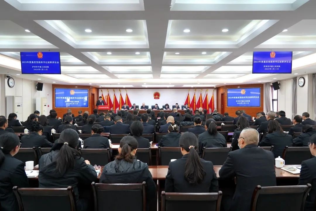 為進一步壓實基層黨組織書記抓黨建工作主體責任,推動基層黨建工作提質(zhì)增效,近日,瀘州中院召開2023年度基層黨組織書記述職評議會。黨組書記、院長李俊以及其他院領導、各黨支部書記、全體黨員干警參會,黨組成員、機關黨委書記曾蓮主持會議。