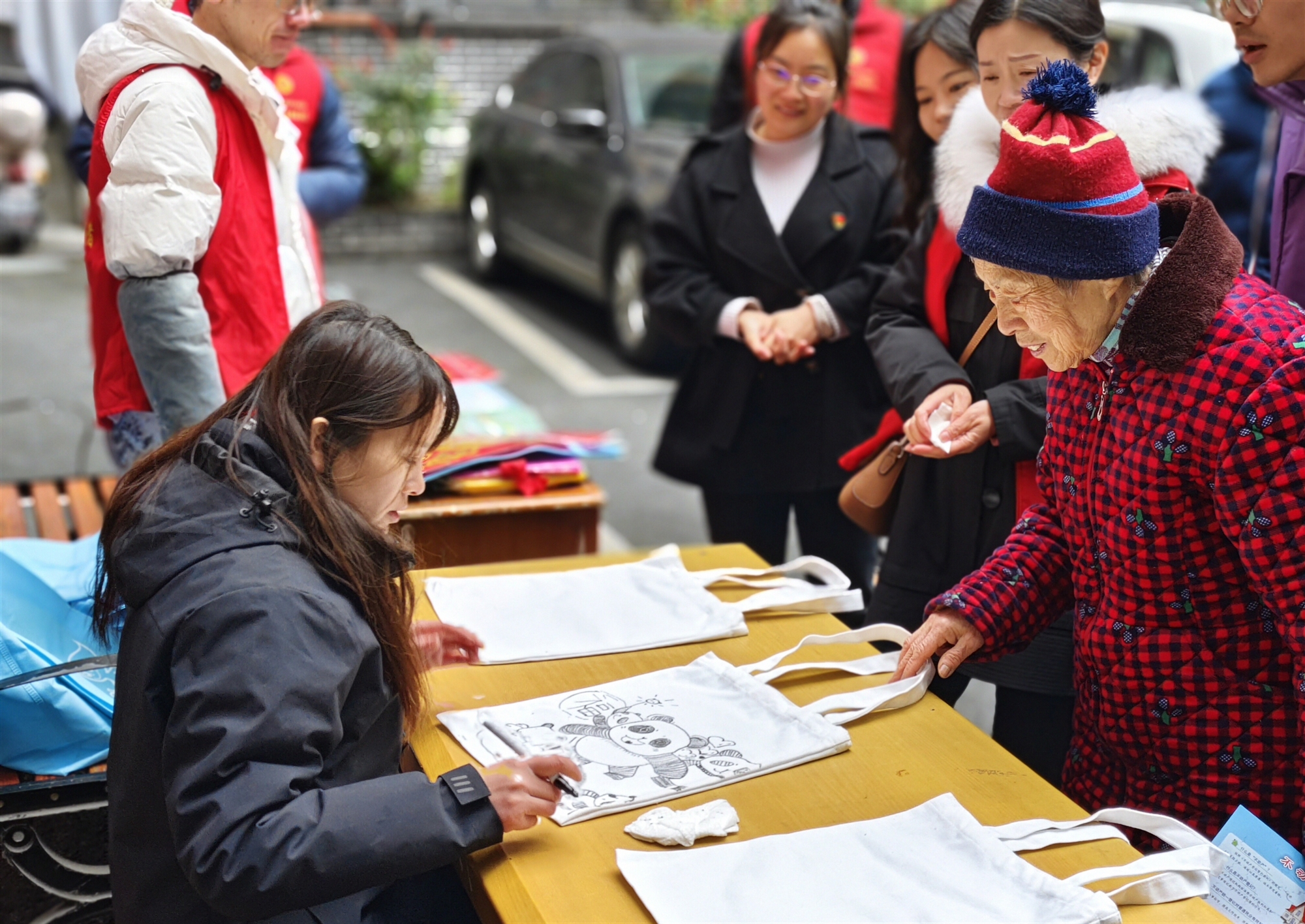 雅安藝悅文化創(chuàng)意有限責(zé)任公司黨員代表、市自然資源和規(guī)劃局“紅旗幟”志愿服務(wù)隊(duì)隊(duì)員以手繪形式向大院居民宣傳熊貓文化、宣講自然資源法律法規(guī),不斷增強(qiáng)大院居民幸福感和獲得感。