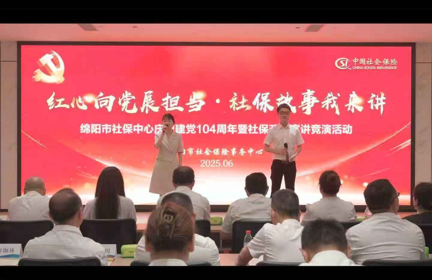 為深入學(xué)習(xí)黨的二十屆三中全會(huì)精神和習(xí)近平總書(shū)記關(guān)于“完善覆蓋全民的社會(huì)保障體系”的重要講話(huà)精神,推進(jìn)“三員行動(dòng)”做深做實(shí),6月27日,綿陽(yáng)市社會(huì)保險(xiǎn)事務(wù)中心舉辦“紅心向黨展擔(dān)當(dāng)•社保故事我來(lái)講” ——慶祝建黨104周年暨社保政策宣講競(jìng)演活動(dòng)。各縣區(qū)市(園區(qū))社保經(jīng)辦機(jī)構(gòu)負(fù)責(zé)人、社保政策宣講員、市社保中心全體黨員干部齊聚一堂,共同聆聽(tīng)身邊榜樣故事,感受人社服務(wù)溫度,汲取擔(dān)當(dāng)作為的奮進(jìn)力量。