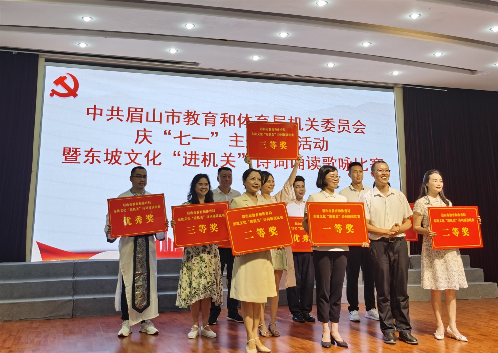 為全面落實(shí)習(xí)近平總書(shū)記來(lái)川視察關(guān)于堅(jiān)定文化自信、傳承弘揚(yáng)中華優(yōu)秀傳統(tǒng)文化的重要指示精神,6月28日,眉山市教育和體育局機(jī)關(guān)直屬單位圍繞“東坡文化礪初心·三蘇家風(fēng)鑄廉心”主題,開(kāi)展慶“七一”主題黨日活動(dòng)暨東坡文化“進(jìn)機(jī)關(guān)”詩(shī)詞誦讀歌詠比賽。