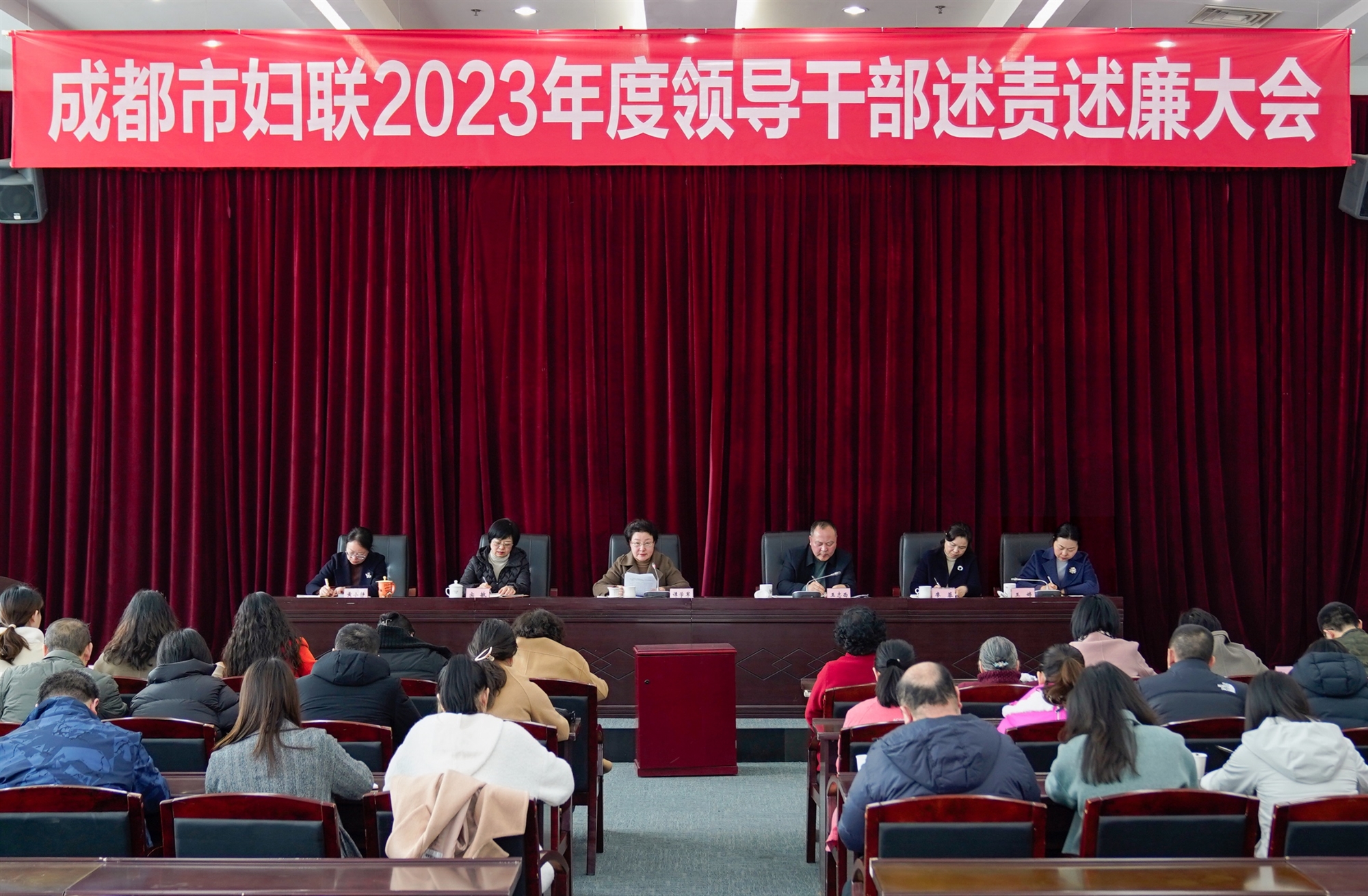 成都市婦聯(lián)機(jī)關(guān)干部職工及下屬事業(yè)單位負(fù)責(zé)人、離退休干部代表參加大會。