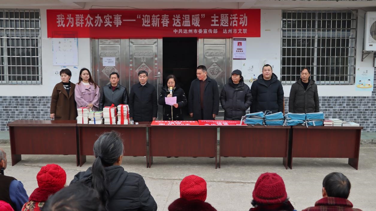 為傳承發(fā)揚(yáng)中華優(yōu)秀傳統(tǒng)文化,營造喜慶祥和的節(jié)日氛圍,1月31日,達(dá)州市委宣傳部組織市文聯(lián)、市文學(xué)藝術(shù)院、市作協(xié)等文藝家協(xié)會(huì)和市文軒公司前往定點(diǎn)幫扶村——大竹縣月華鎮(zhèn)井崗村開展“迎新春 送溫暖 獻(xiàn)良策 促發(fā)展”主題活動(dòng),把黨和政府的關(guān)心關(guān)懷送到基層一線。