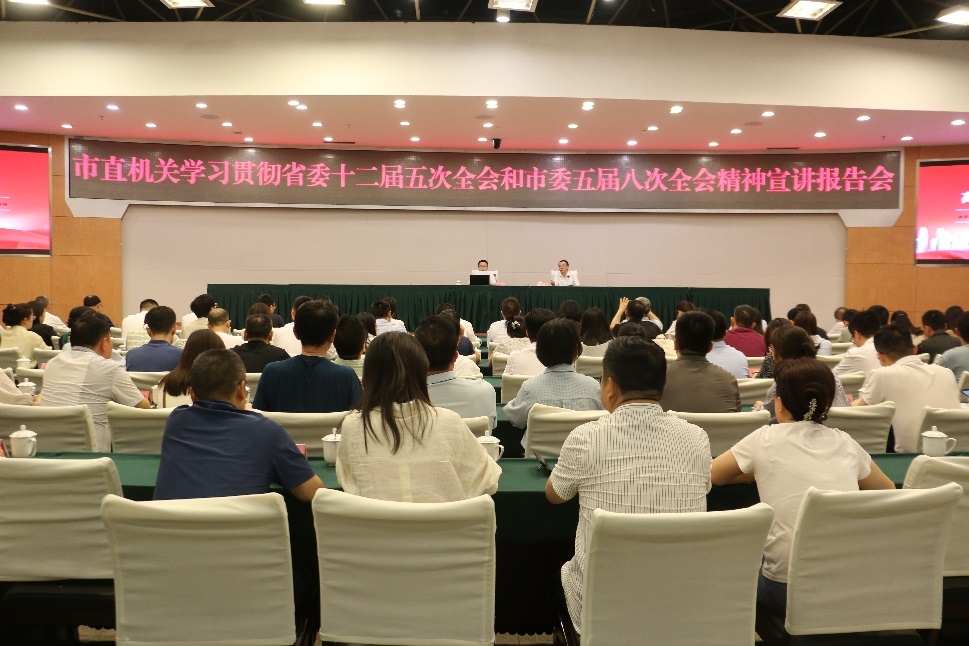6月18日,達州市直機關學習貫徹省委十二屆五次全會和市委五屆八次全會精神宣講會在市政中心綜合樓舉行,達州市委政研室副主任、改革辦副主任蔣道山作專題宣講報告,市直各部門(單位)黨建工作分管領導,青年理論學習小組組長參加會議。